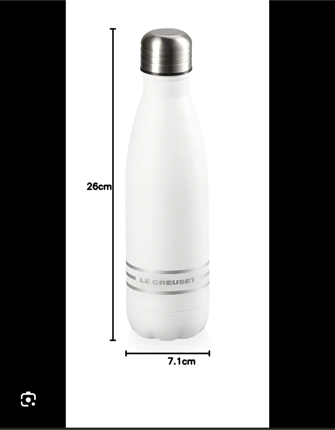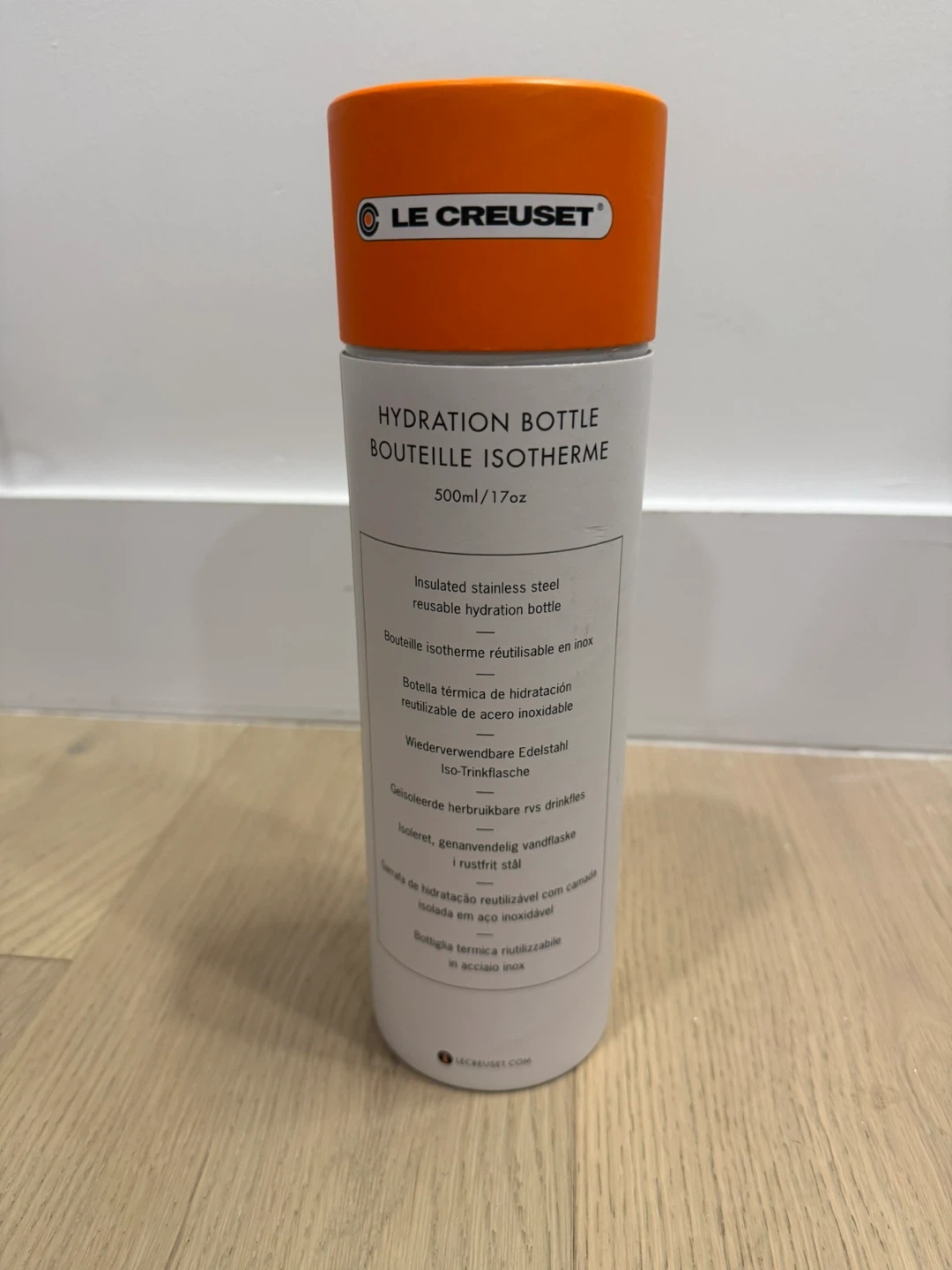 Never used. Keep your drinks cold or hot with this Le Creuset Hydration Bottle! It's an insulated stainless steel bottle that holds 500ml (17oz). It measures 26cm in height and 7.1cm in diameter. Perfect for everyday use!