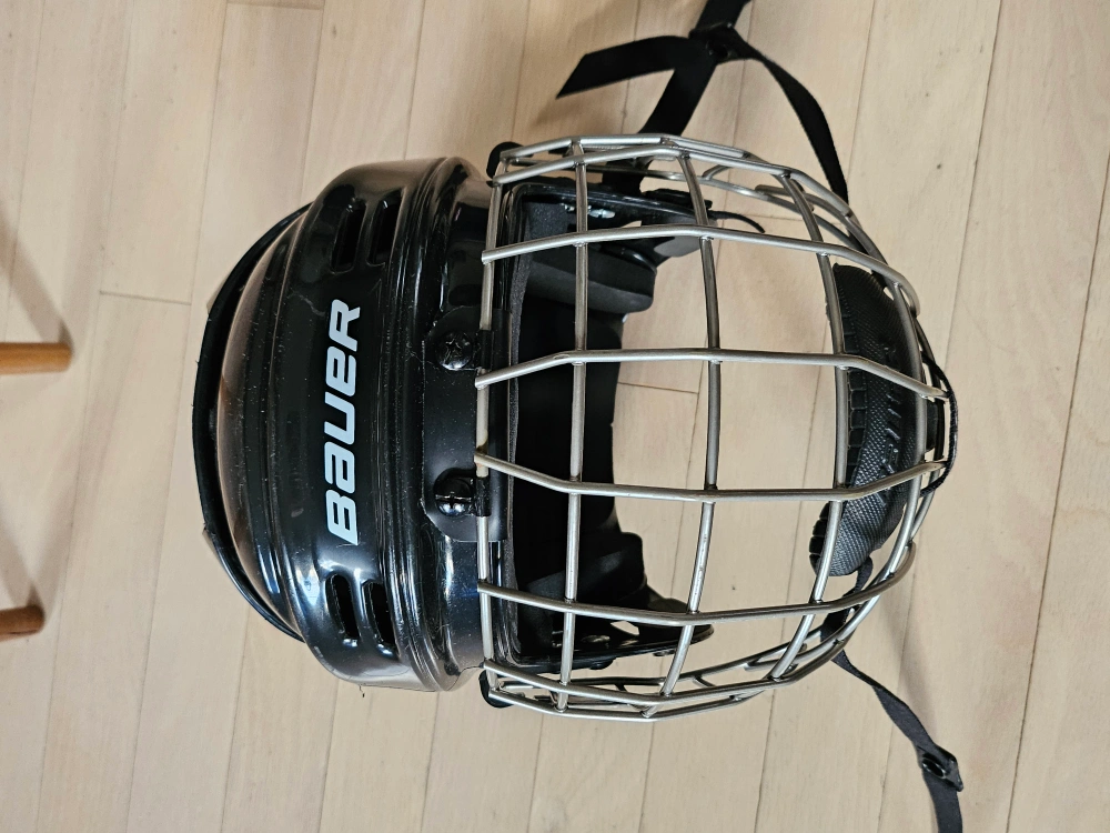 Lightly used Small Kids Black Bauer hockey helmet with cage. Includes face guard. Great condition.