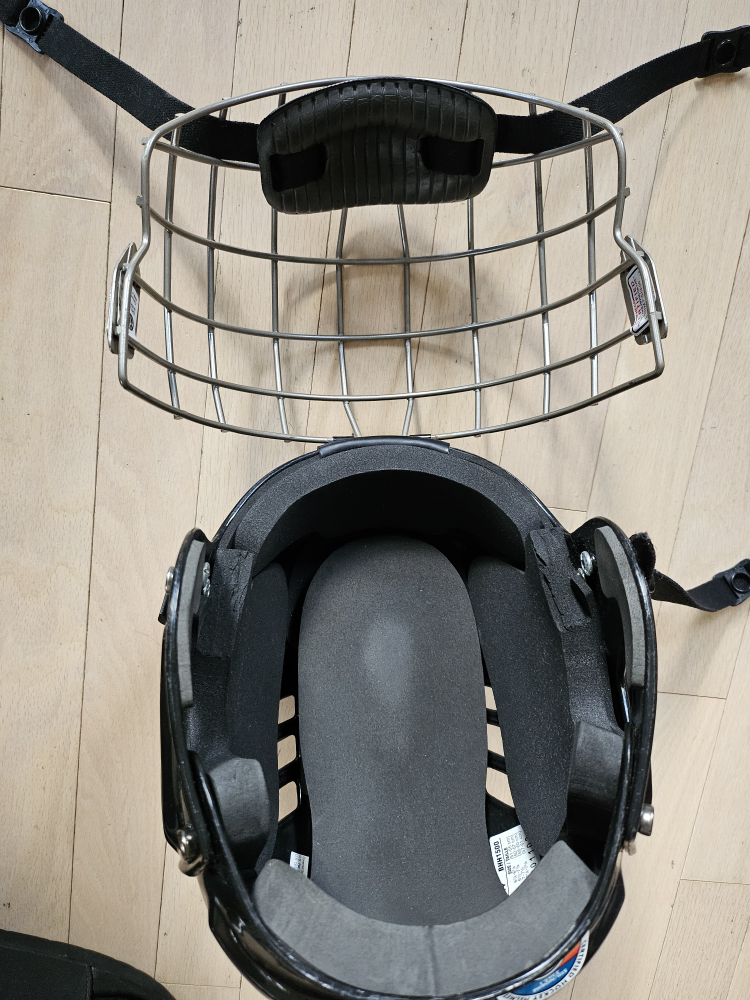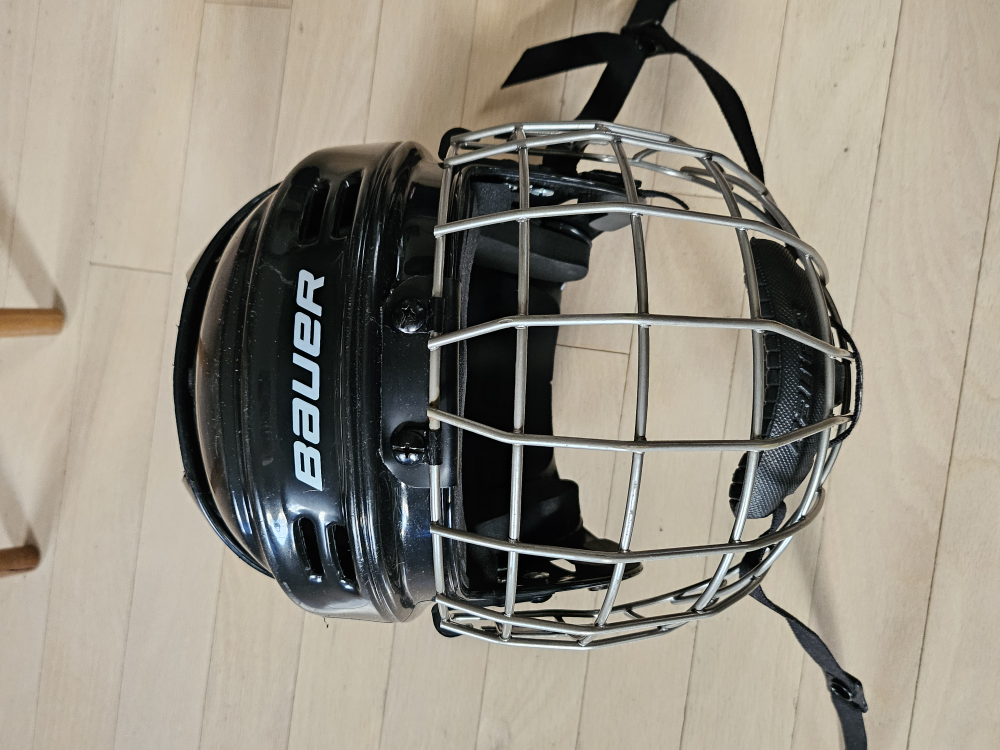Lightly used Small Kids Black Bauer hockey helmet with cage. Includes face guard. Great condition.