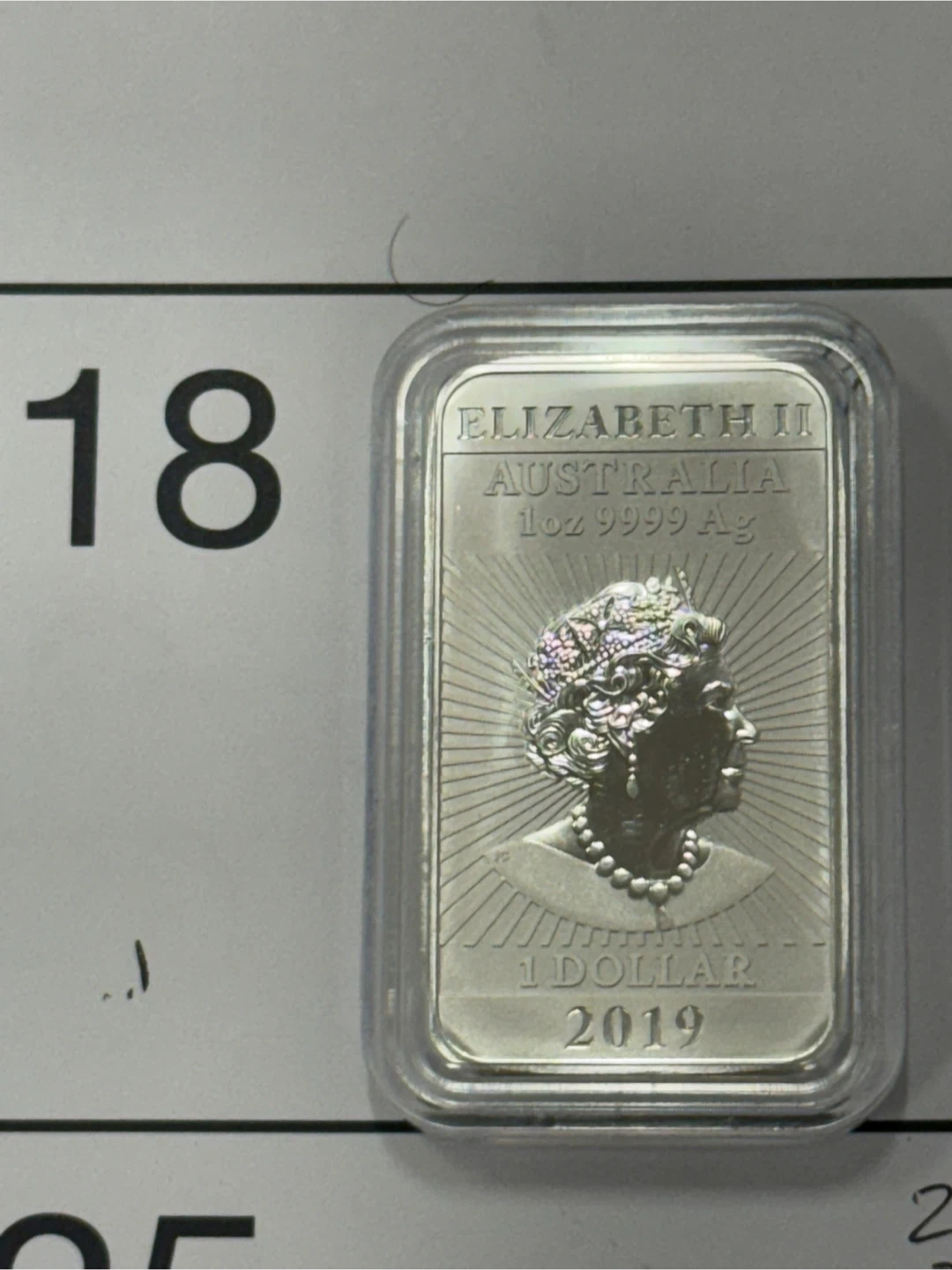 This is a 1 oz .9999 fine silver bullion bar from Australia. It features Queen Elizabeth II on one side and a dragon design on the other. The year is 2019. A great piece for any collector!