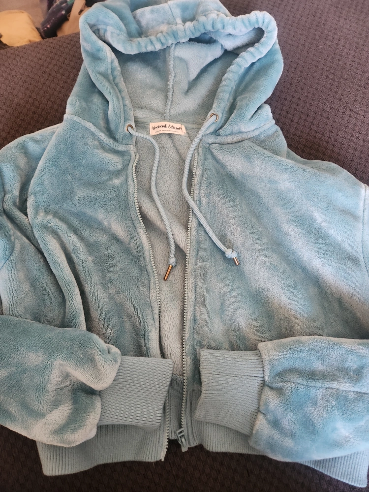 - Weekend Edition hoodie in light blue, size medium