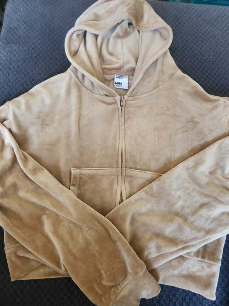 - Tan zipper hoodie, size medium