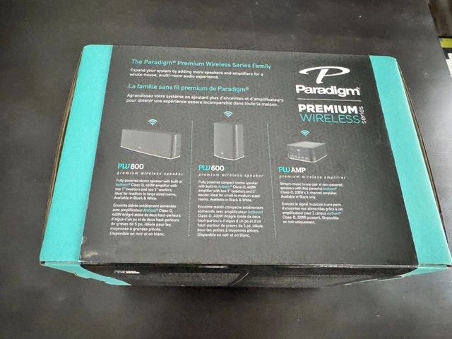 Open box, but in brand new condition. Paradigm PW AMP Premium Wireless Series includes ARC Anthem Room Correction. This is a Class D Amplifier to stream lossless audio wirelessly over standard wireless networks to any pair of non-powered speakers 2x200W Dynamic Peak 2x 100W RMS. This model has been discontinued but was listed by Paradigm for USD 349. In box condition with all components as listed in the user manual, see photos. If the ad is up, it's available. Pick up near Movati in Barrhaven close to Cresthaven and Strandherd.