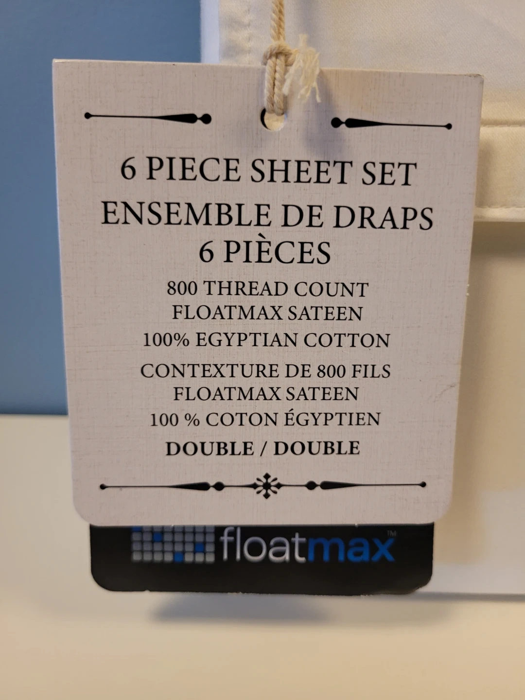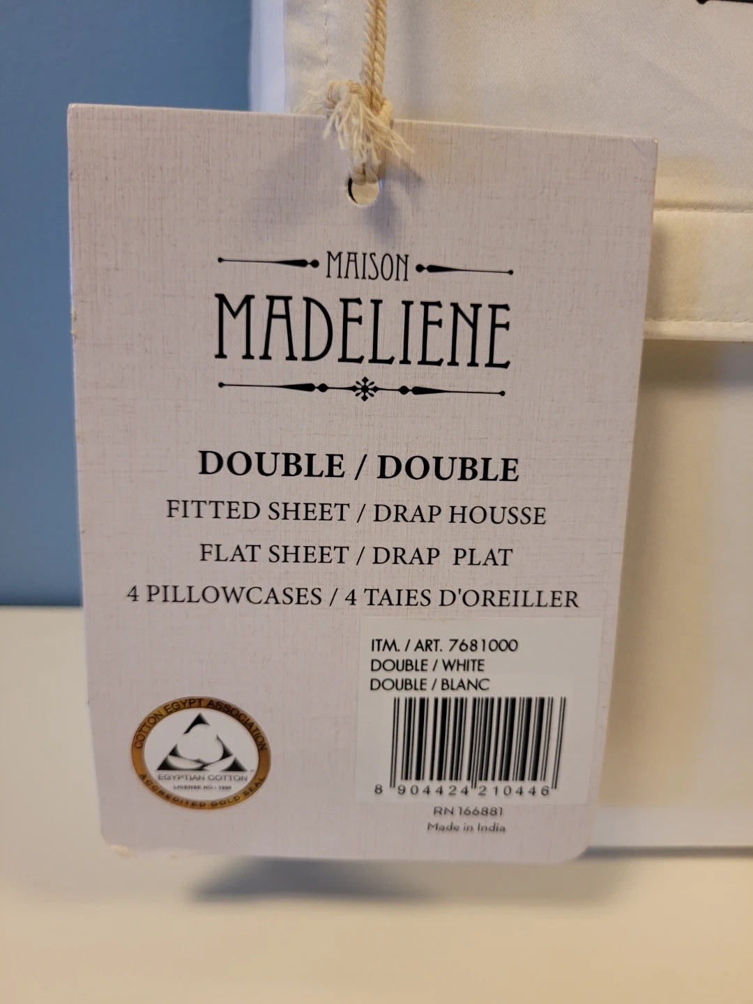 Selling a new Maison Madeliene '6-piece' bed sheet set in white for a double bed.