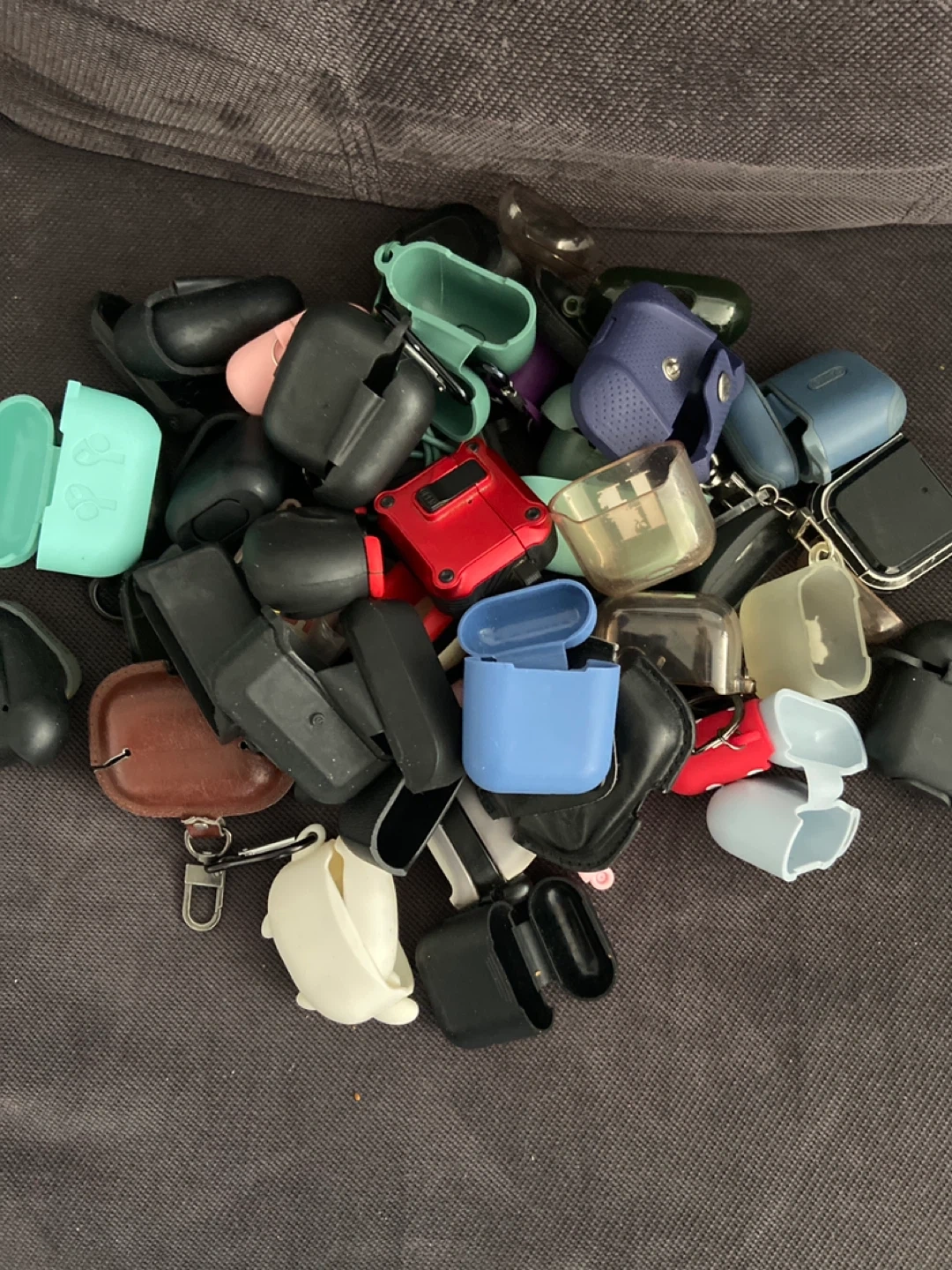 Selling a variety of used AirPod cases! There's a mix of colours and styles, perfect for protecting your AirPods or adding a bit of personality. They show some signs of use, but are still functional.