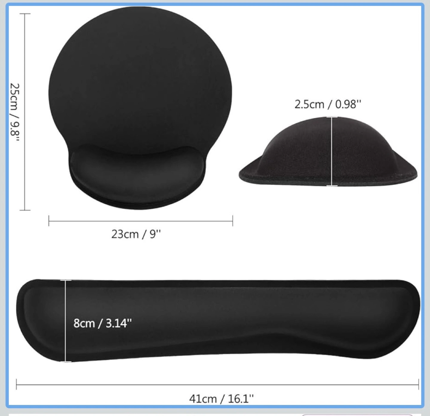 - Mouse pad: 25cm / 9.8" x 23cm / 9"