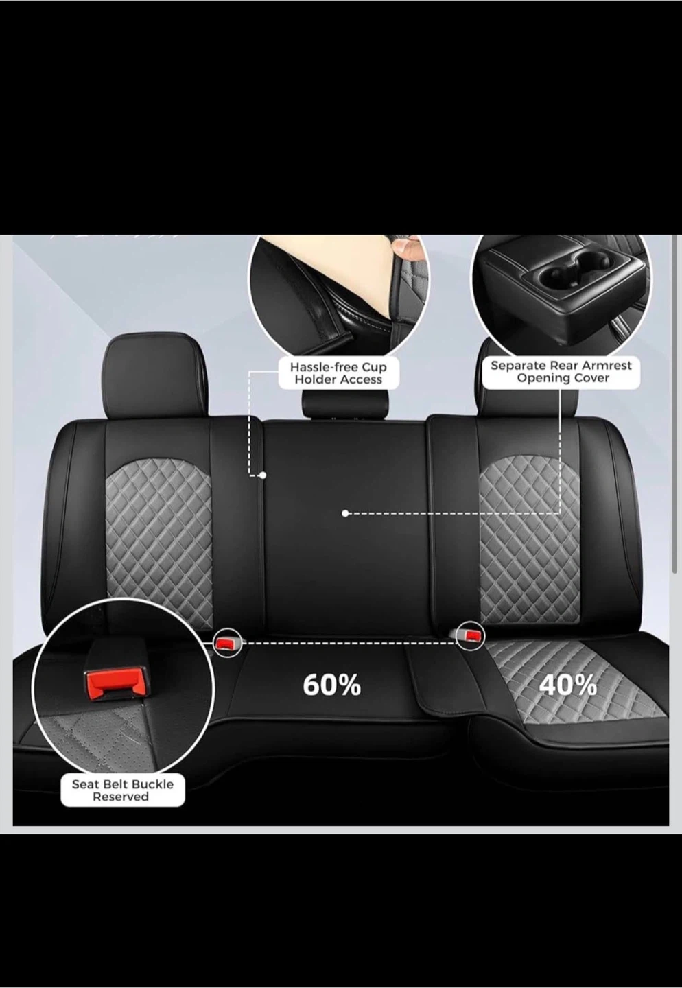[Precision cut] - Concave 60/40 split rear seat is individually covered for flexible lifting, with adjustable Velcro connect, rear seat covers never come apart when folded and solid bench also compatible. Cup holder is available when needed