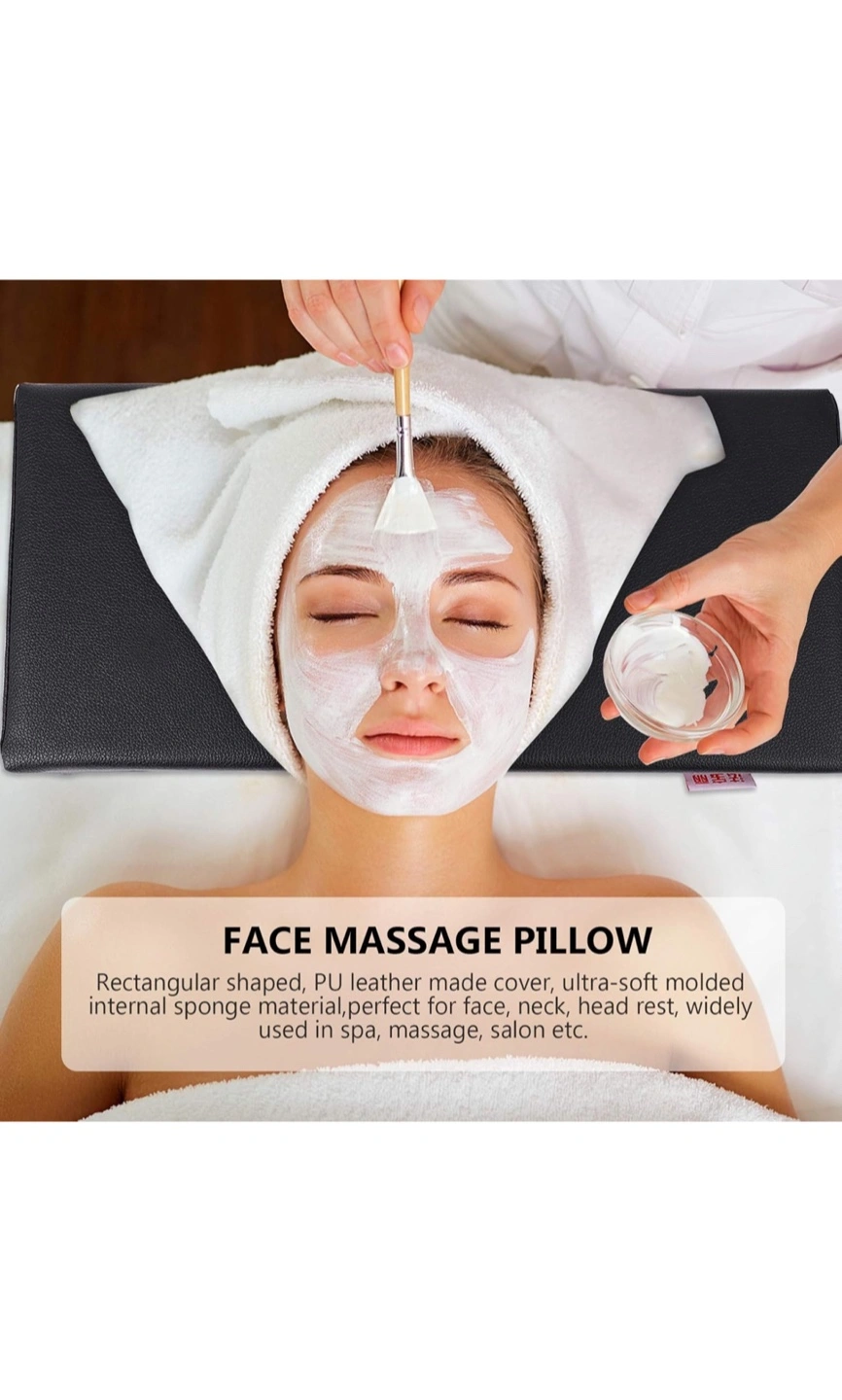 This is a face massage pillow, perfect for spa, massage, salon, etc. It's made with a PU leather cover and an ultra-soft molded internal sponge material. The pillow is rectangular shaped and great for face, neck, and head rest. It's portable and easy to use!