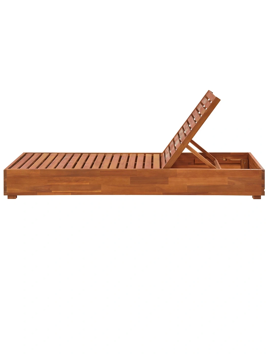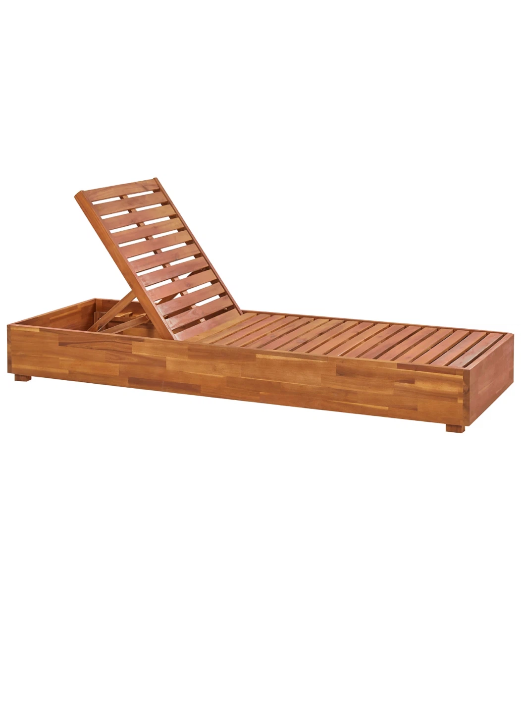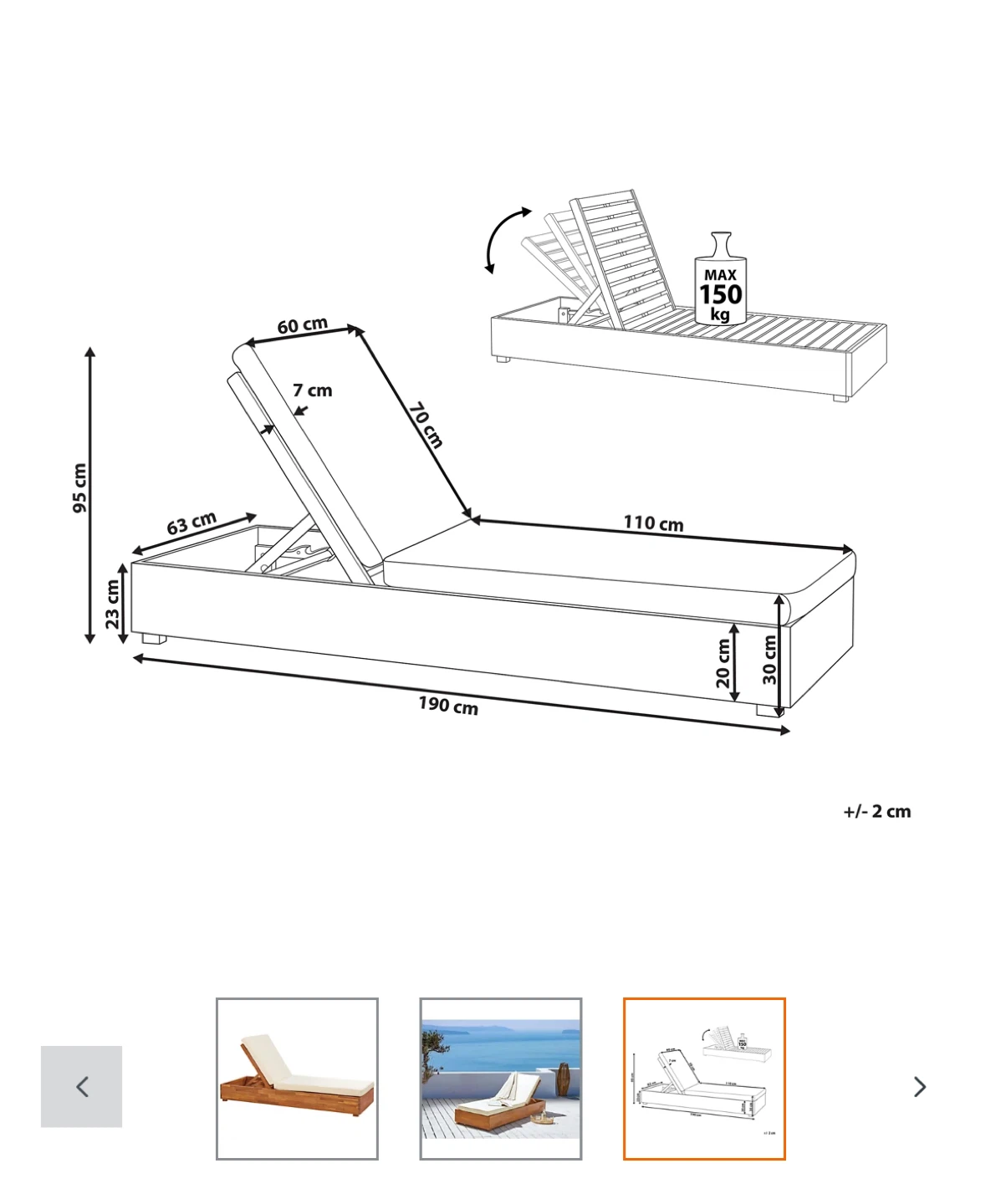 Get ready for summer with this beautiful wooden outdoor lounger! and ready for assembly. The dimensions are approximately 190 cm long and 70 cm wide, perfect for relaxing in the sun. It can support a maximum weight of 150 kg.