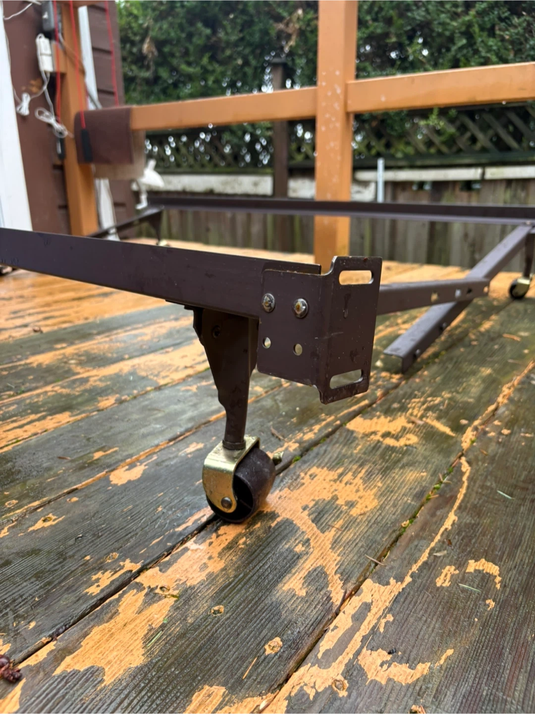 Selling a single metal bed frame, perfect if you need a simple and sturdy base for your mattress! It comes with wheels, making it easy to move around when you need to clean or rearrange your room