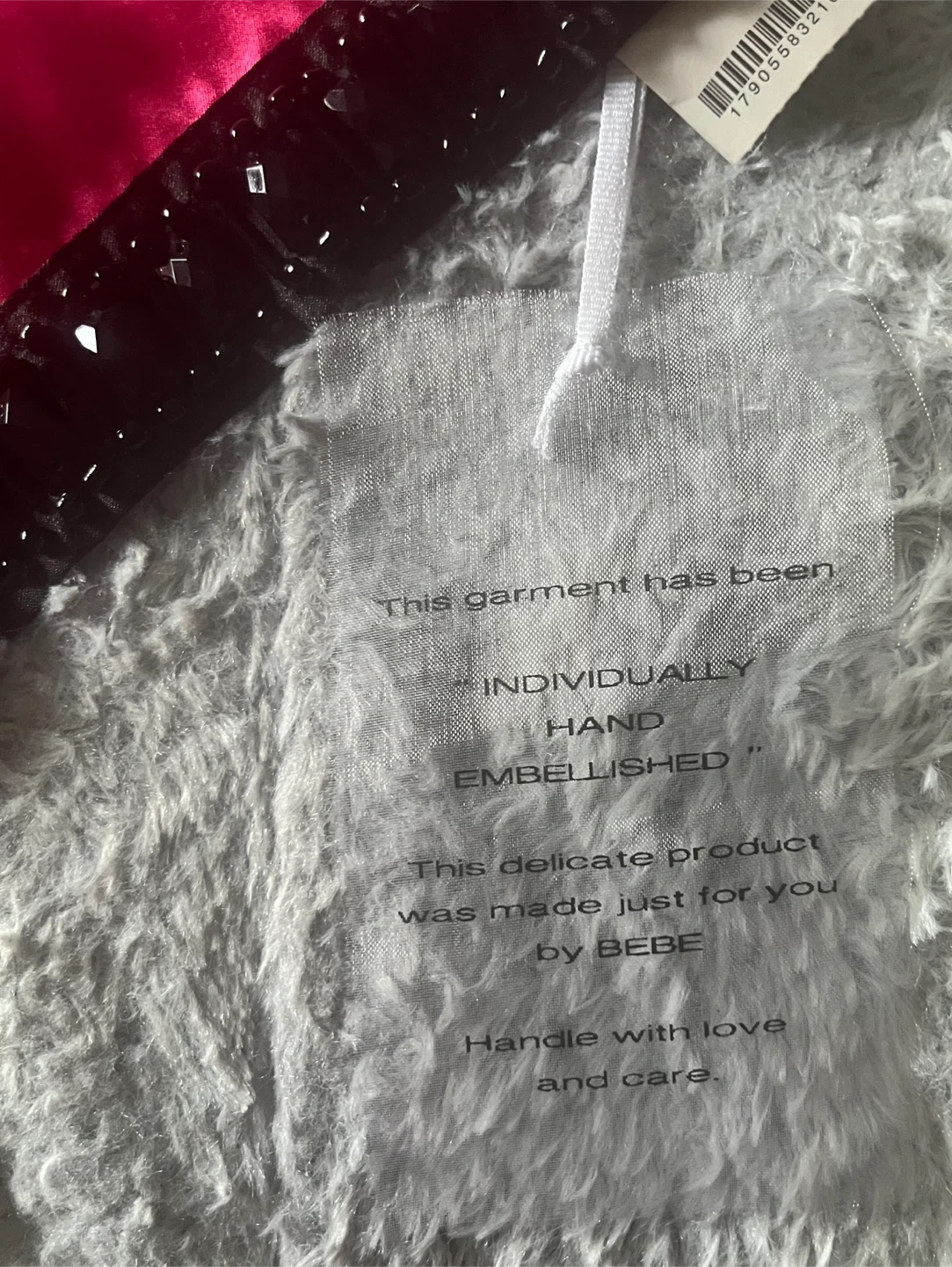 This Bebe halter top is a vibrant pink with elegant black trim and a cute bow. It's been individually hand embellished, making it a unique piece. This delicate product was made just for you by Bebe. Handle with love and care!