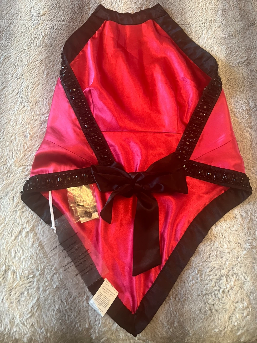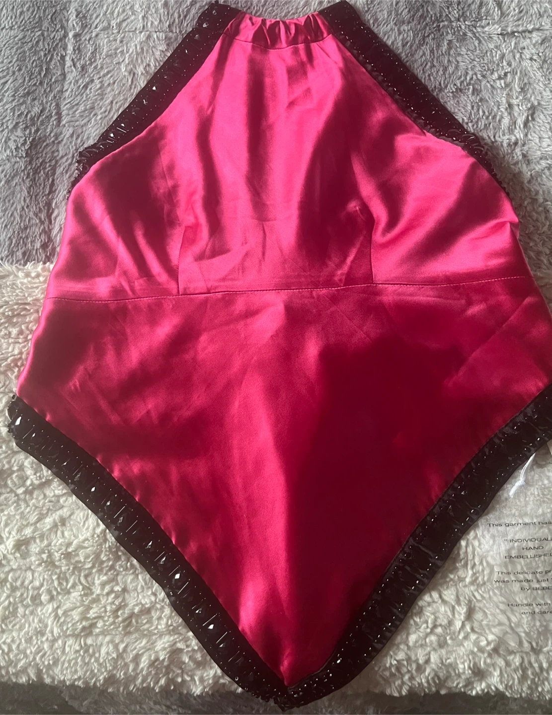 This Bebe halter top is a vibrant pink with elegant black trim and a cute bow. It's been individually hand embellished, making it a unique piece. This delicate product was made just for you by Bebe. Handle with love and care!