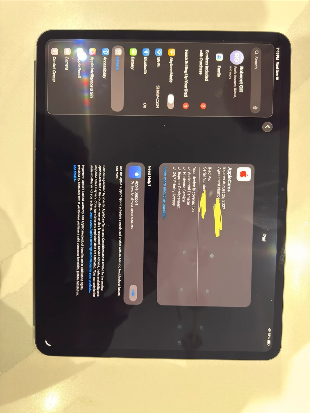 Selling my iPad Pro M4 13 inch with an Apple Pencil! The iPad Pro has AppleCare+ that expires August 23, 2027. The battery is at 100% maximum capacity. Also included is the Apple Pencil , Apple folio case
