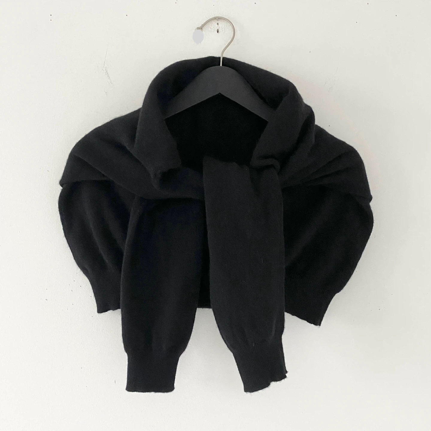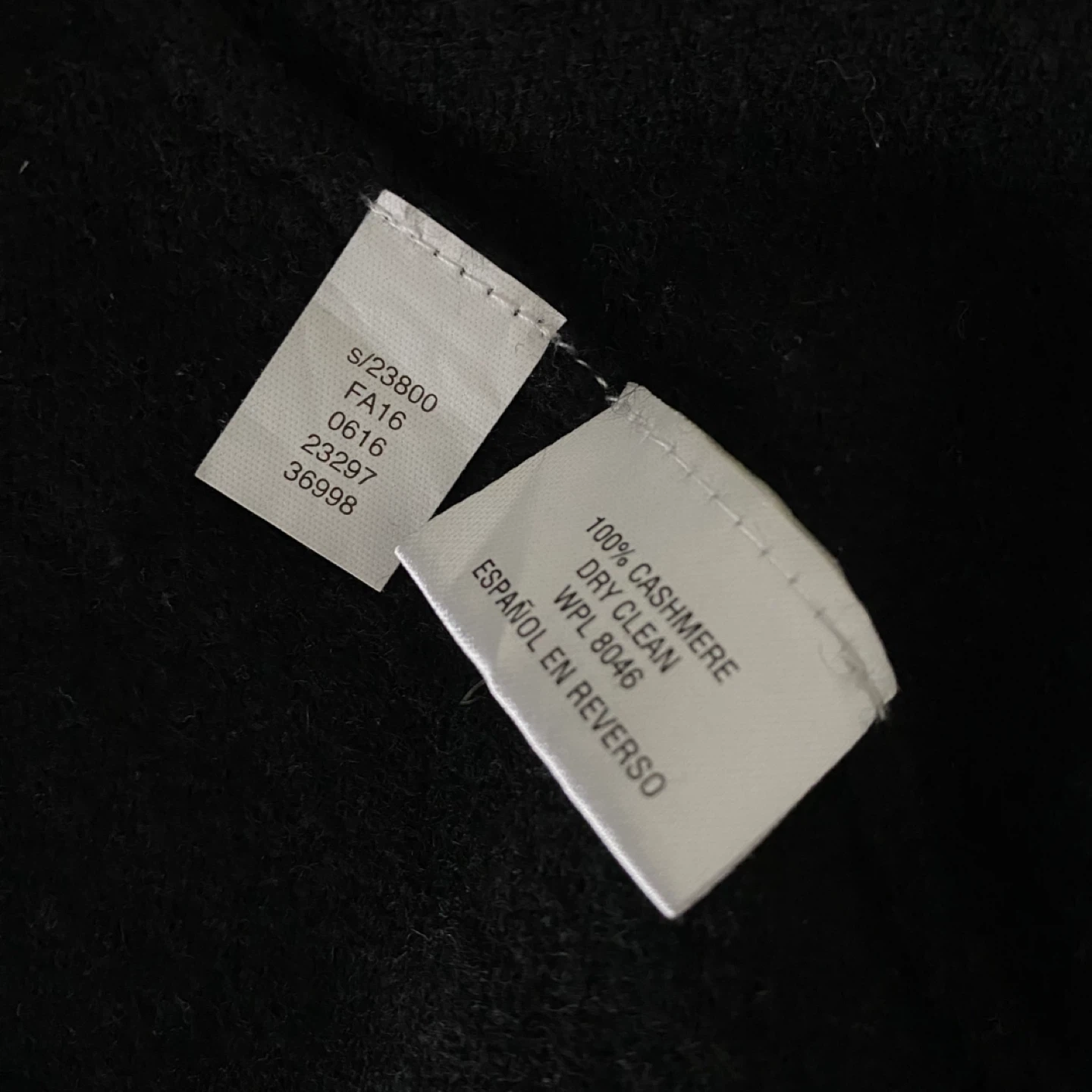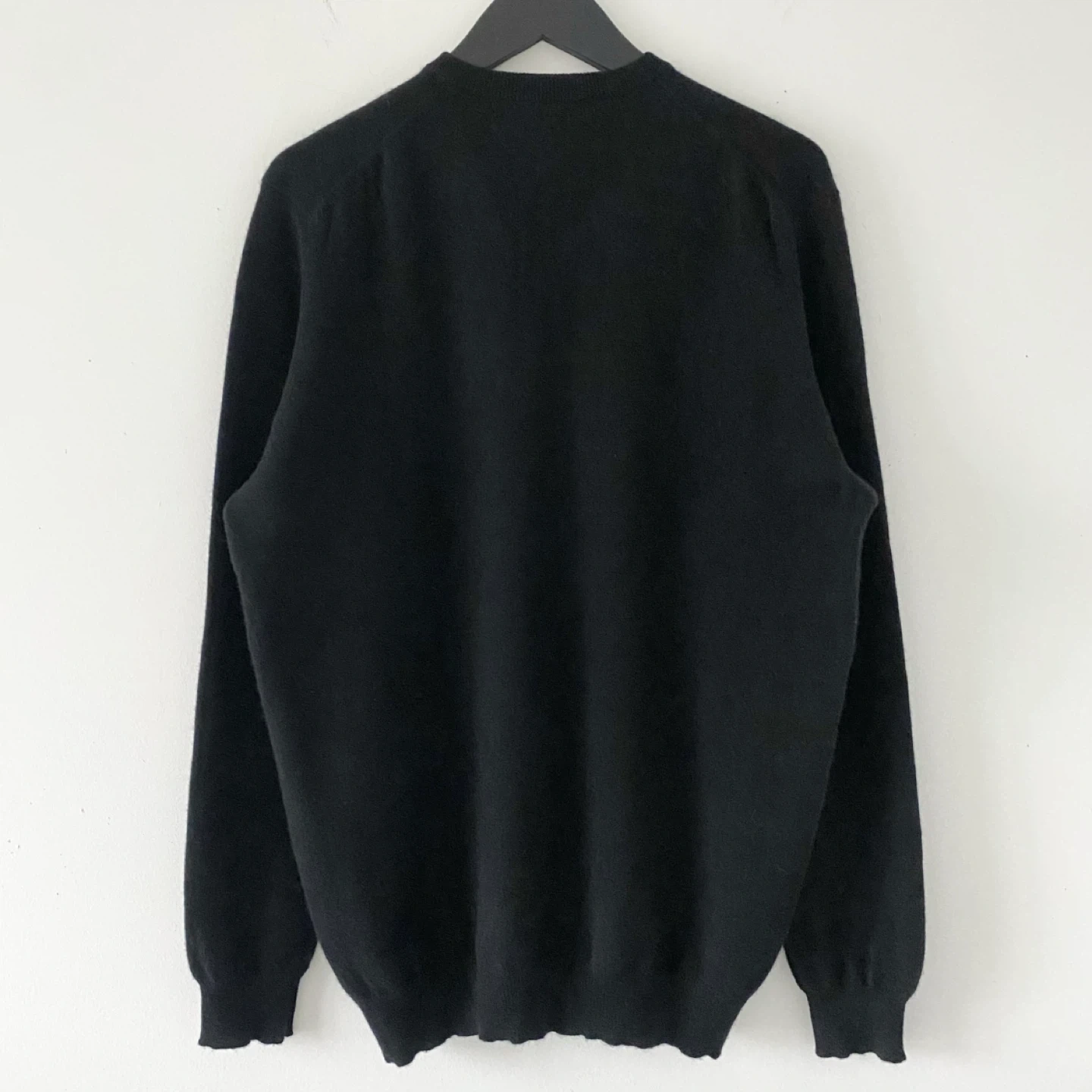Club Room classic v-neck sweater. Made of lightweight 100% cashmere in rich black. It's soft, cozy and luxe. I don't find it itchy but it's subjective. There's no staining, pilling or damage. It's clean and in excellent condition.