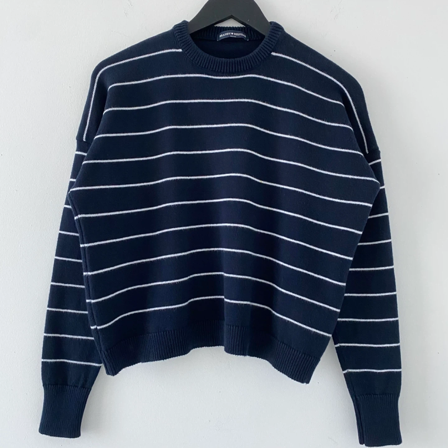 Brandy Melville classic crewneck sweater with dropped shoulders. Made of lightweight 100% cotton in navy and white stripes. It's very soft! Can be worn many seasons. There's some general wear but there's no staining or damage. It's clean and in great gently used condition.