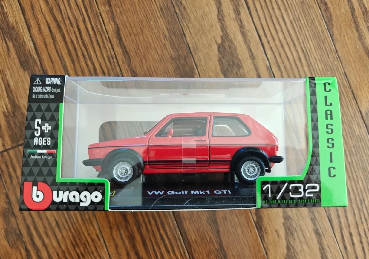 Selling a Burago Classic 1/32 scale die-cast metal model of a Volkswagen Golf Mk1 (1979) GTI. Officially licensed by Volkswagen. A cool collectible for any car enthusiast!