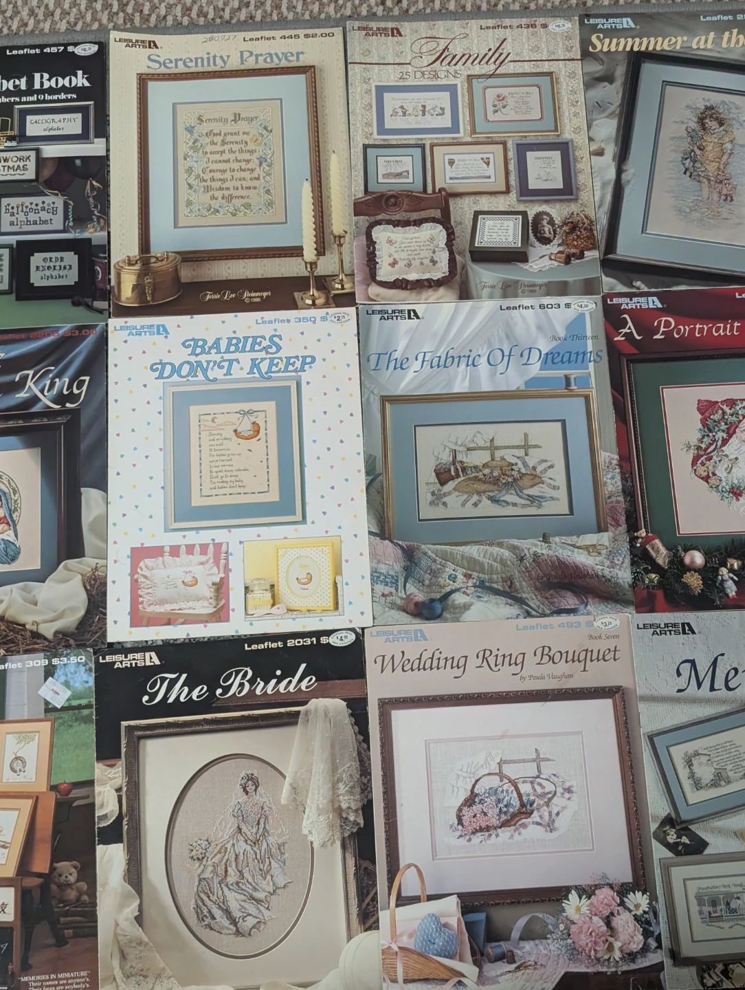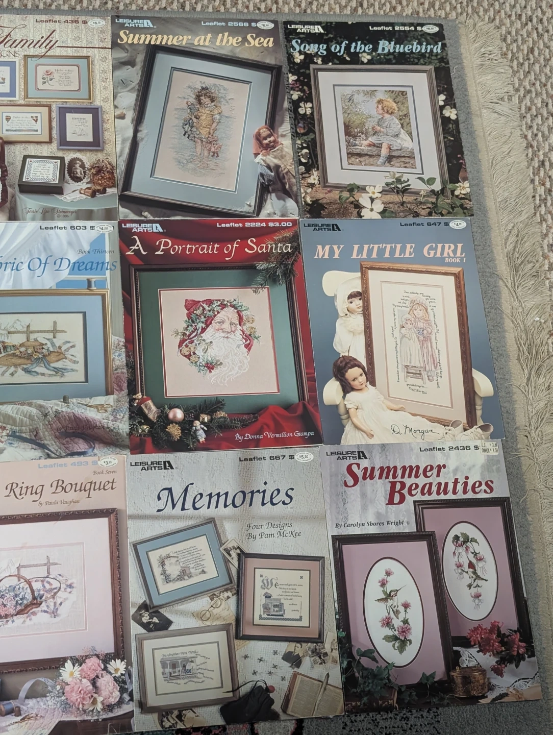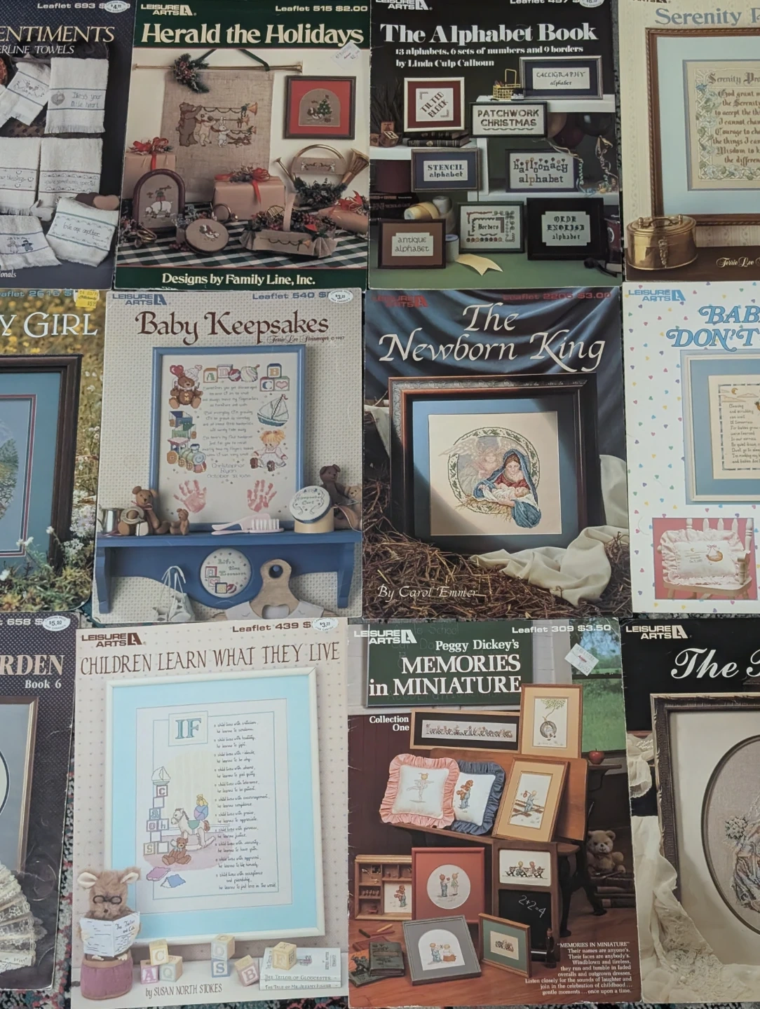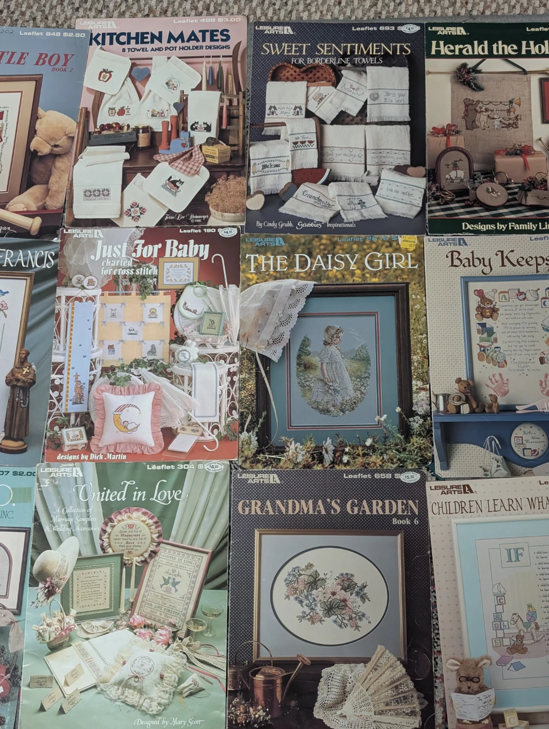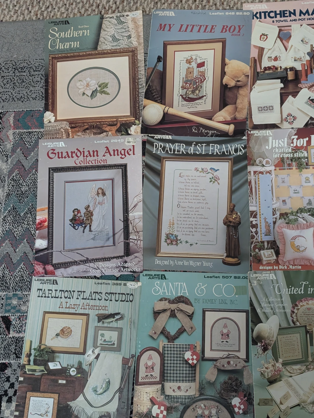 $5 each. A collection of Leisure Arts cross stitch pattern books! Perfect for crafters looking for inspiration and patterns for their next project. There are many different patterns available.