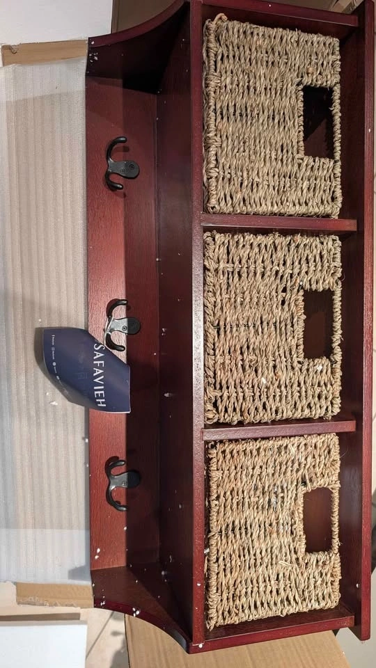 Brand new in box Safavieh Finley 3-Basket Hanging Wall Rack in cherry finish. Amazon price is $169 CAD + tax, asking only $85 CAD.