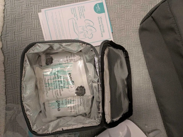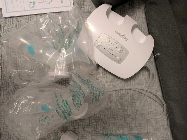 I am selling a deluxe Evenflo double electric breast pump, nearly new, as you can see in the pictures. It's a closed system pump. Features: * Adjustable suction levels * Multiple flange sizes for comfort * Includes a convenient tote bag and cooler * Hygienic closed system Asking $120 OBO