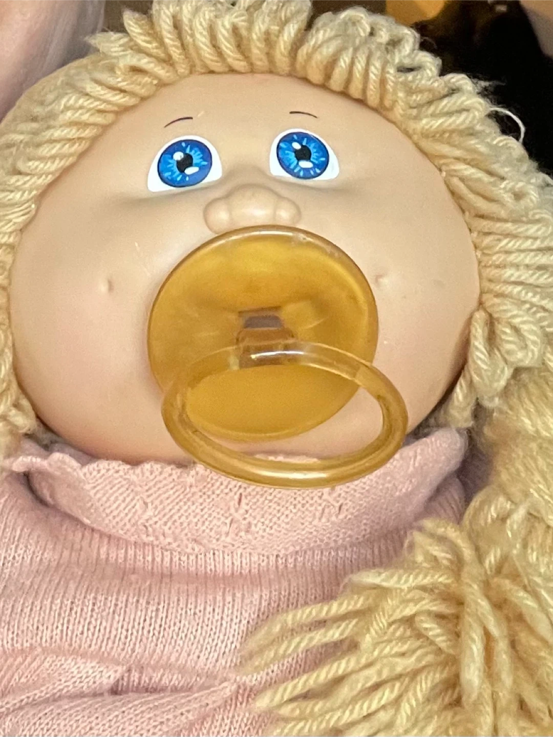 I’m offering two additional Cabbage Patch dolls. One red headed boy* with his original clothing and shoes, and a blonde girl with a pacifier and her original clothing and shoes.