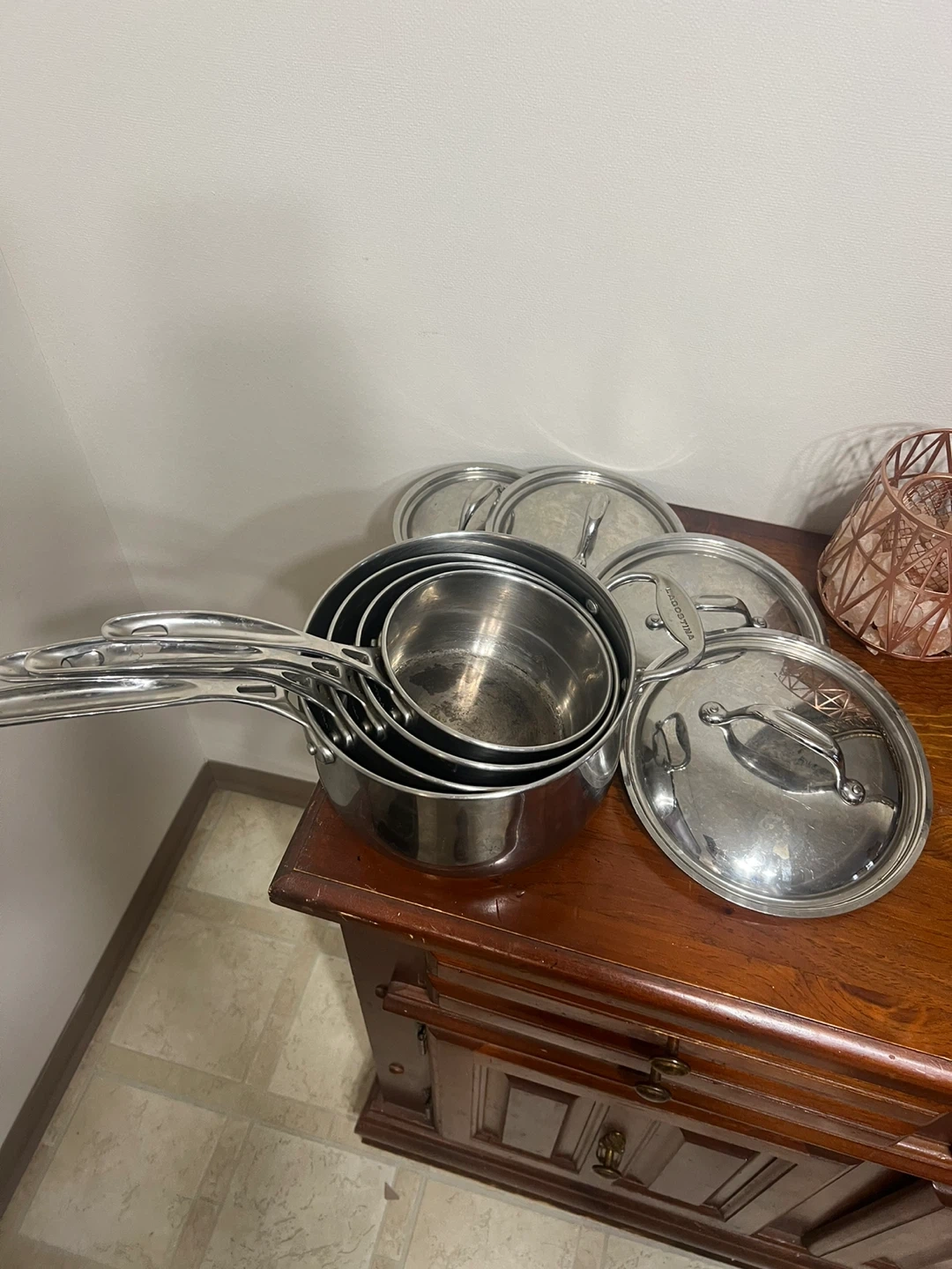 Selling a Lagostina stainless steel cookware set. It's in great shape and ready for a new kitchen. This set includes various pots and pans with lids, perfect for all your cooking needs!