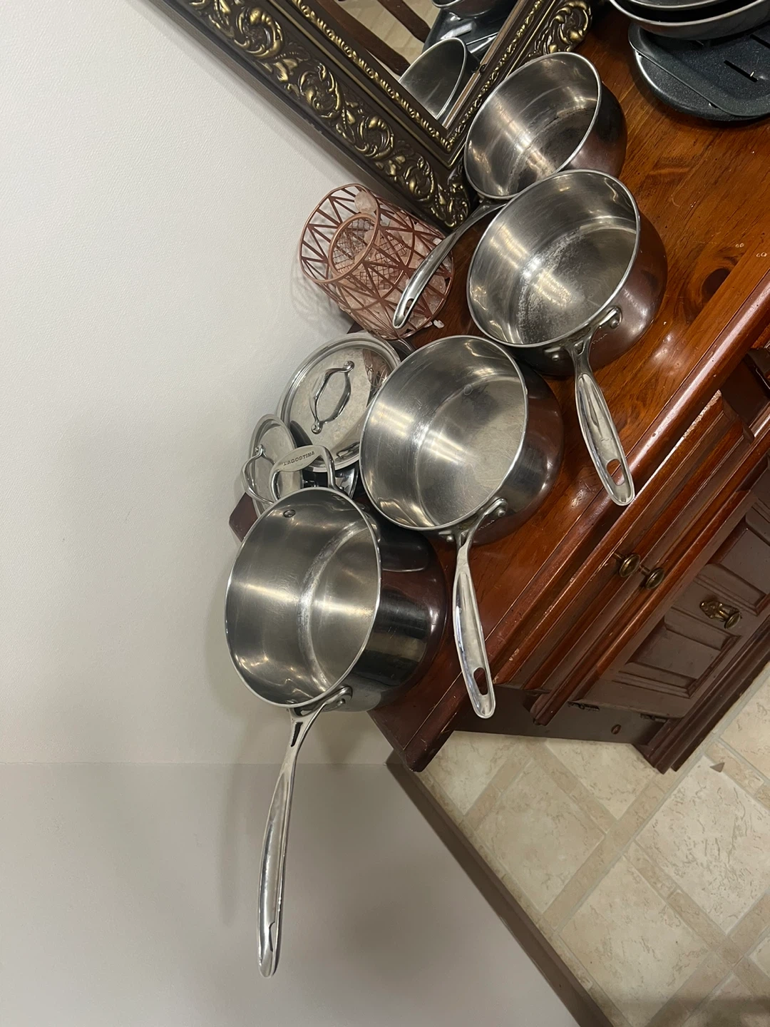 Selling a Lagostina stainless steel cookware set. It's in great shape and ready for a new kitchen. This set includes various pots and pans with lids, perfect for all your cooking needs!