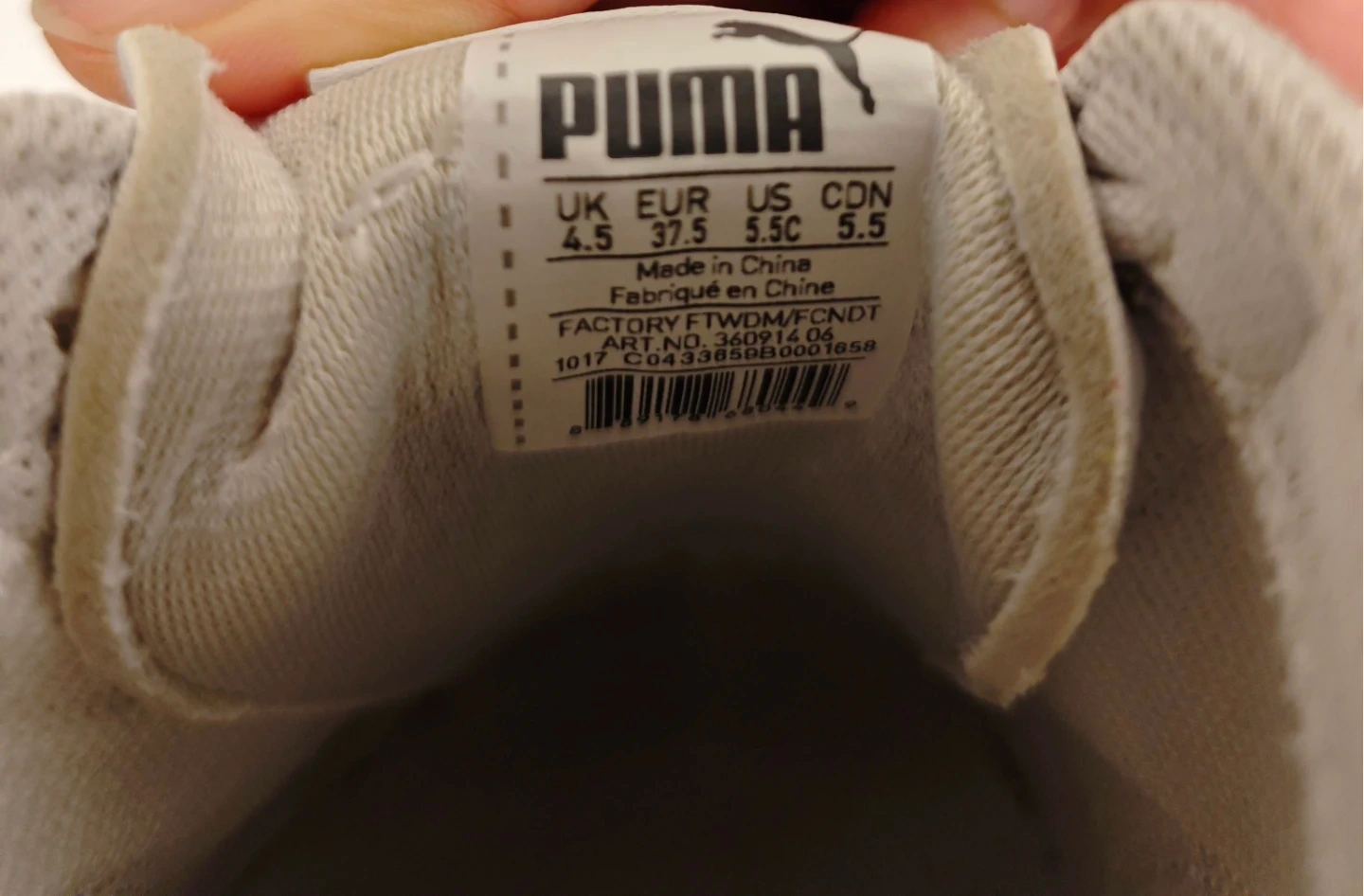 Selling a pair of Puma sneakers in white. Worn once. They are in great condition and ready for a new owner. The size is 5.5 CDN.