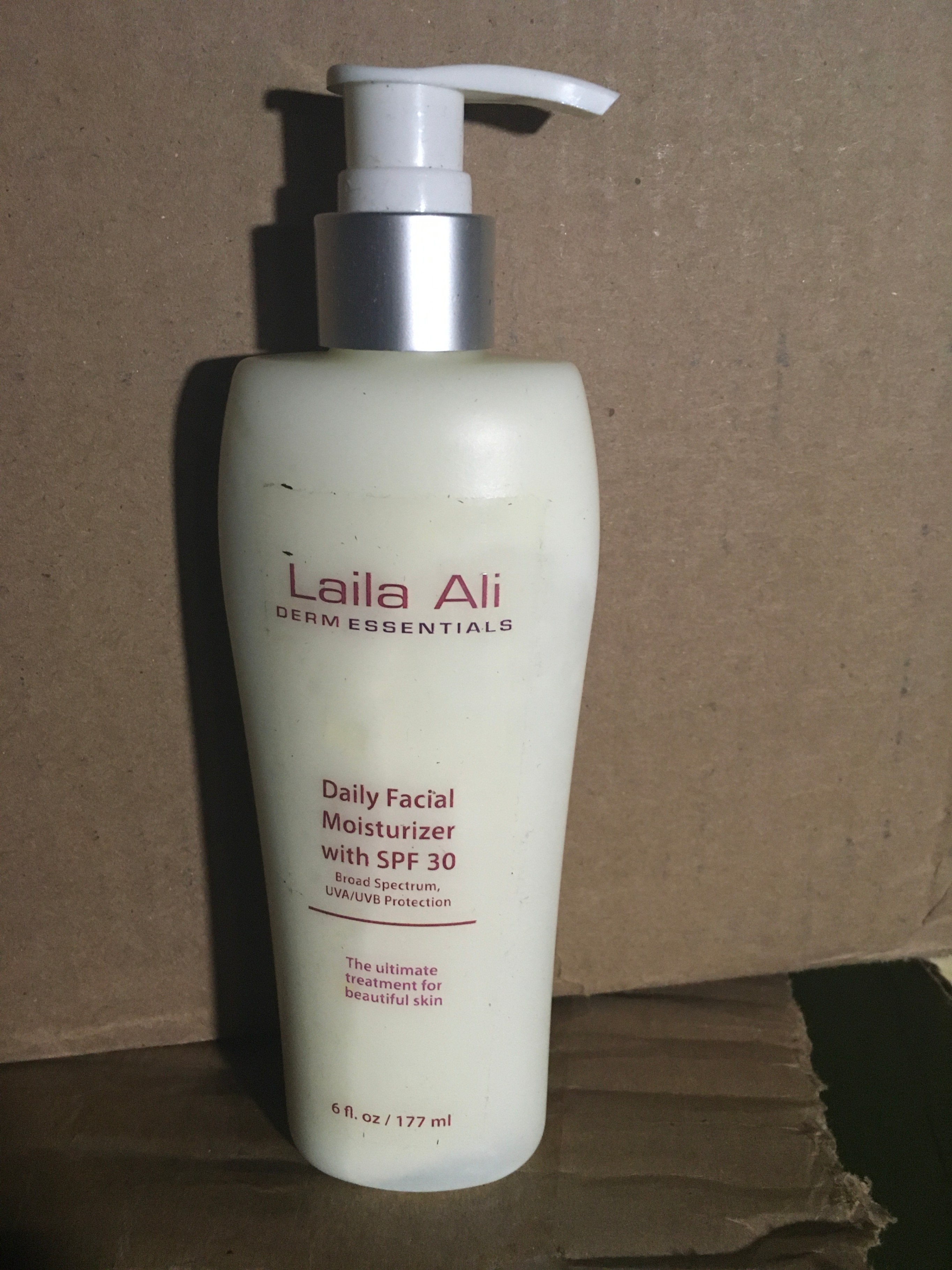 Selling a Laila Ali Derm Essentials Daily Facial Moisturizer with SPF 30. It contains broad spectrum UVA/UVB protection and comes in a 6 fl oz / 177 ml bottle. It's the ultimate treatment for beautiful skin!