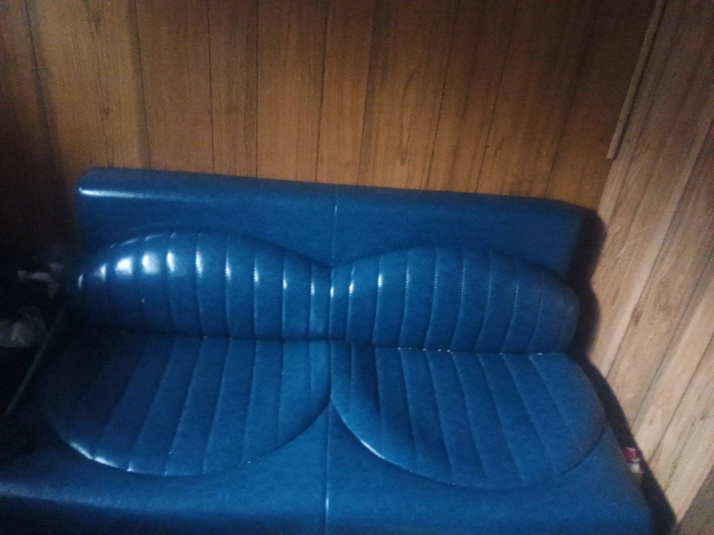 Here's a blue loveseat sofa. It's in good condition and would be perfect for a small space or apartment, custom made