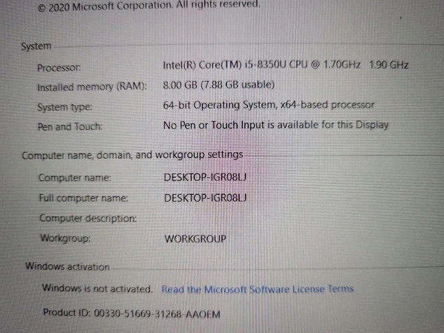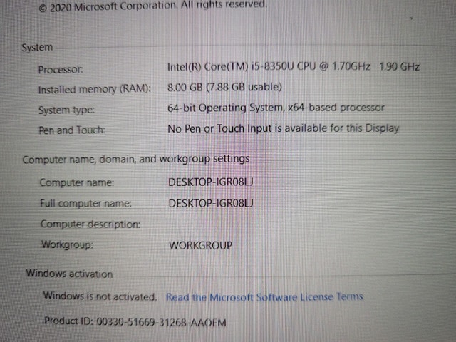 Intel Core i5 8350U / 1.9 GHz, 8 GB RAM, 256 GB (SSD), 13'' FHD 1920 x 1080