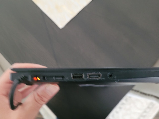 No Touch Screen. Includes charger adapter and Windows 10 pro. HDMI port.