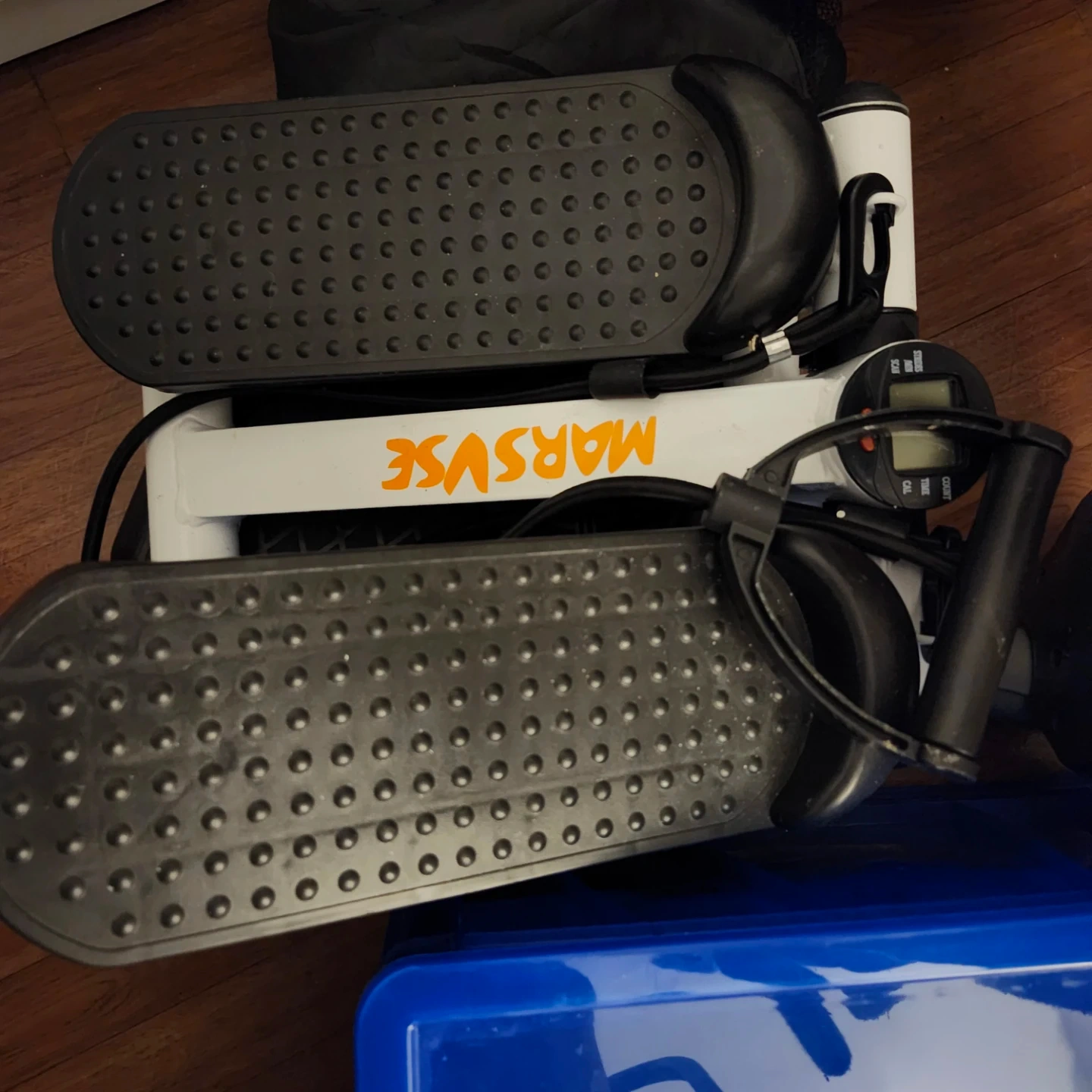 Get your workout in with this MARSVSE mini stepper! It comes with resistance bands to help you tone your upper body while you step. It's compact and easy to store, perfect for small spaces