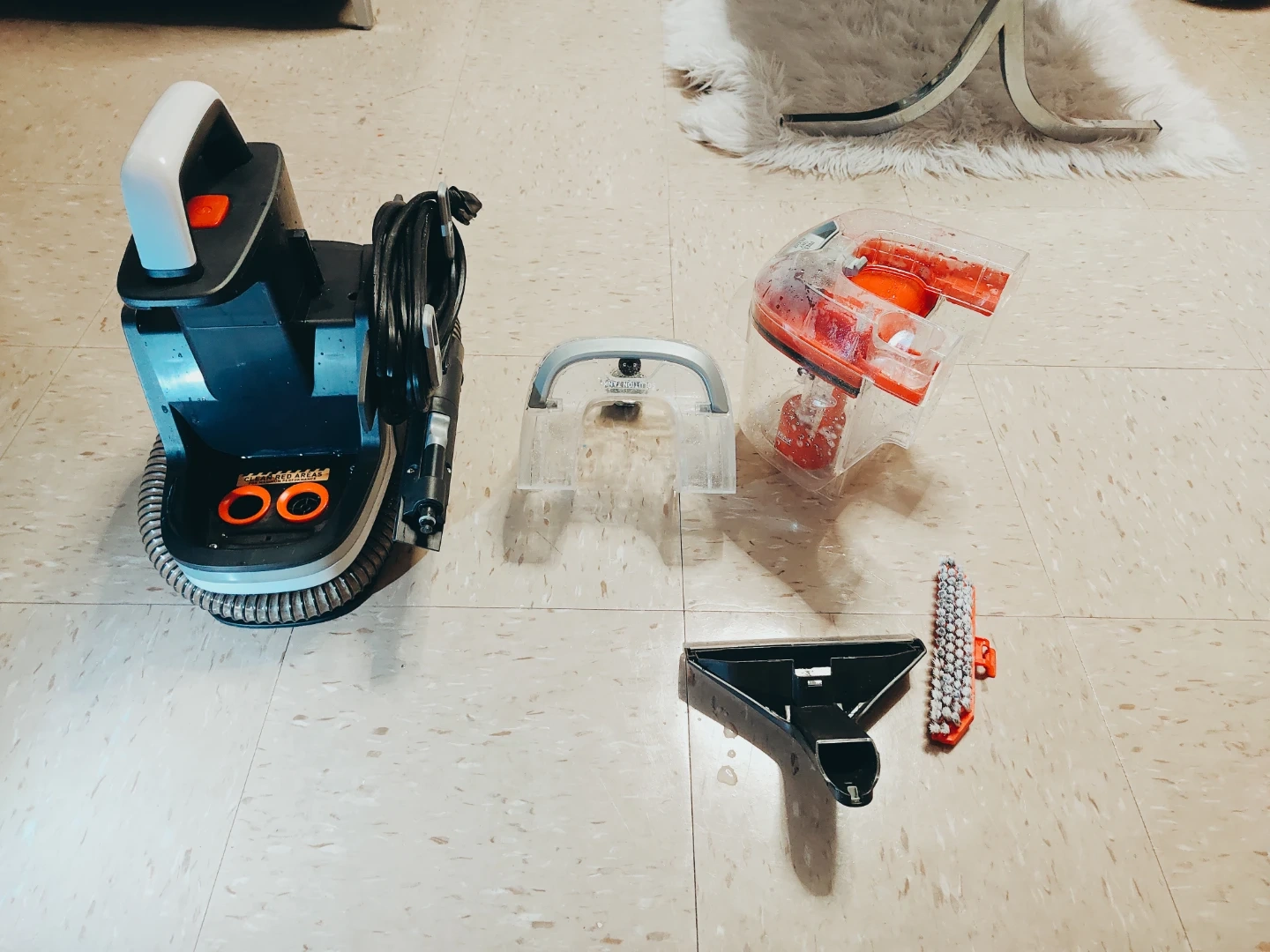 Selling a Hoover CleanSlate portable carpet and upholstery vacuum cleaner It comes with all the components you see in the pictures, Wich is a vacuum nose and a detachable brush is easy to clean and disassemble/assemble and has only been use 3 times and has a tank for cleaning liquid