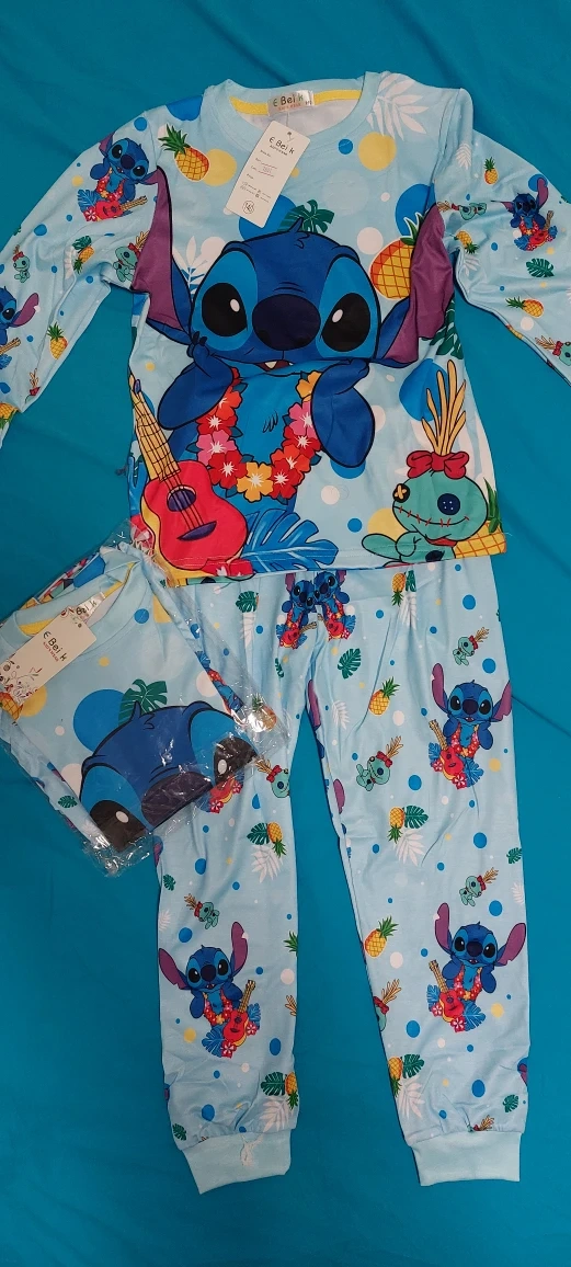 This adorable set feature a fun Stitch design! They are brand new with tags and ready for a cozy night's sleep. The size is 140. $8 each
