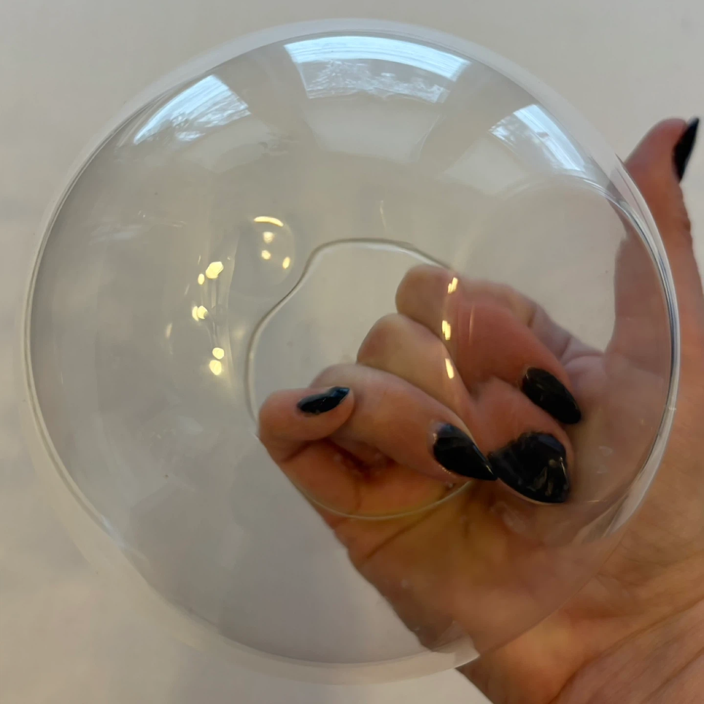 clear glass vase, bubble terrarium, slant opening vase, open top bowl, decorative glass, centerpiece, globe vase, candle holder