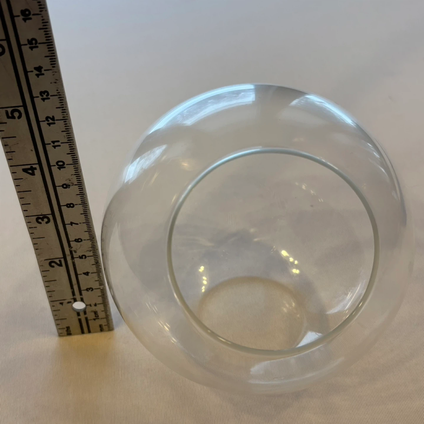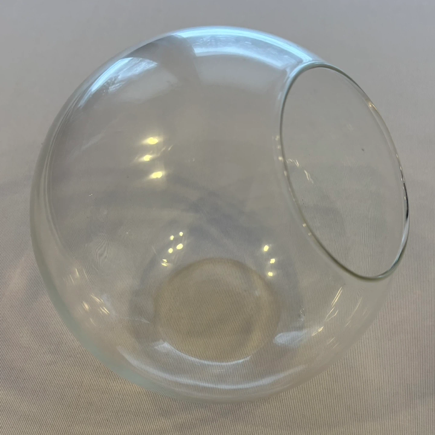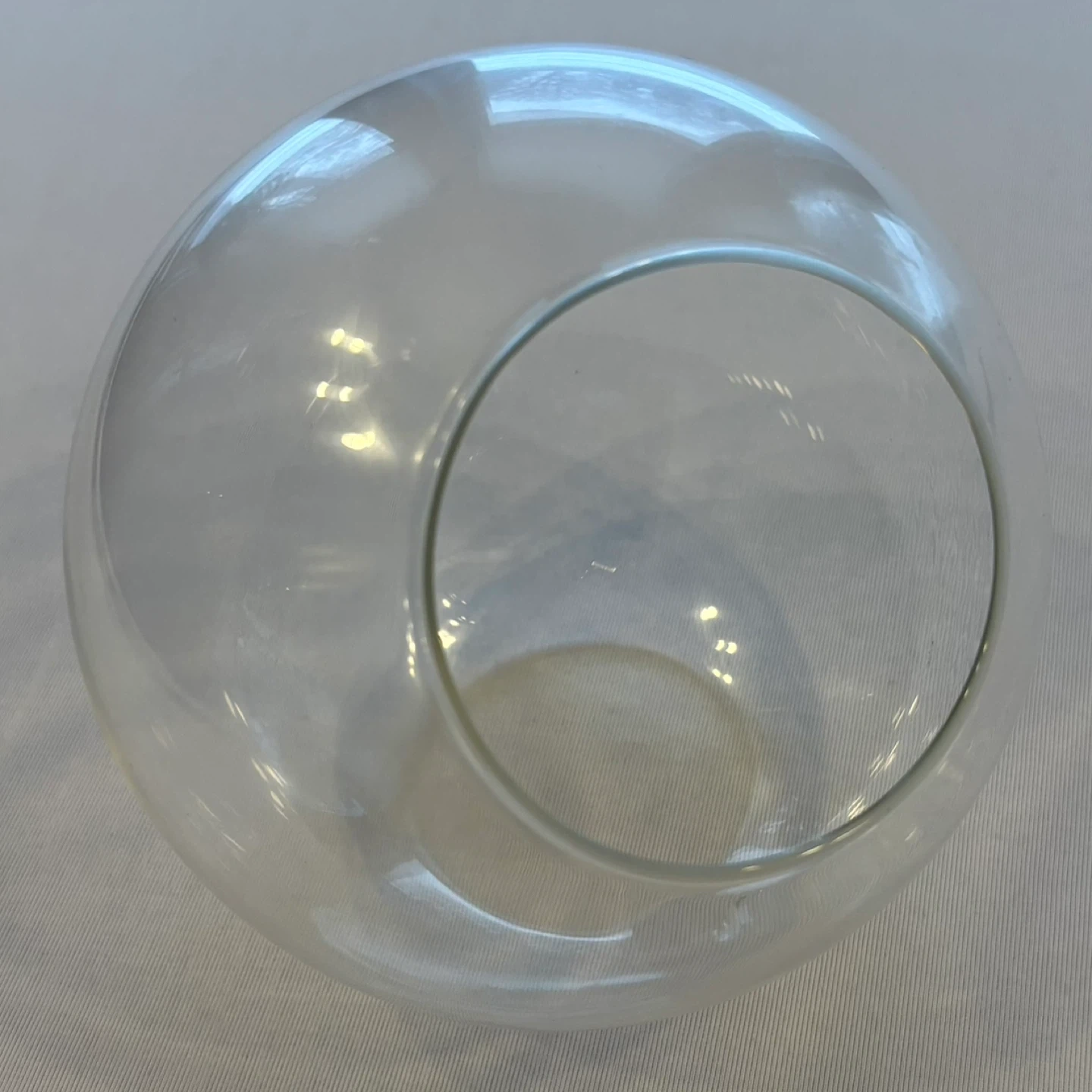 clear glass vase, bubble terrarium, slant opening vase, open top bowl, decorative glass, centerpiece, globe vase, candle holder