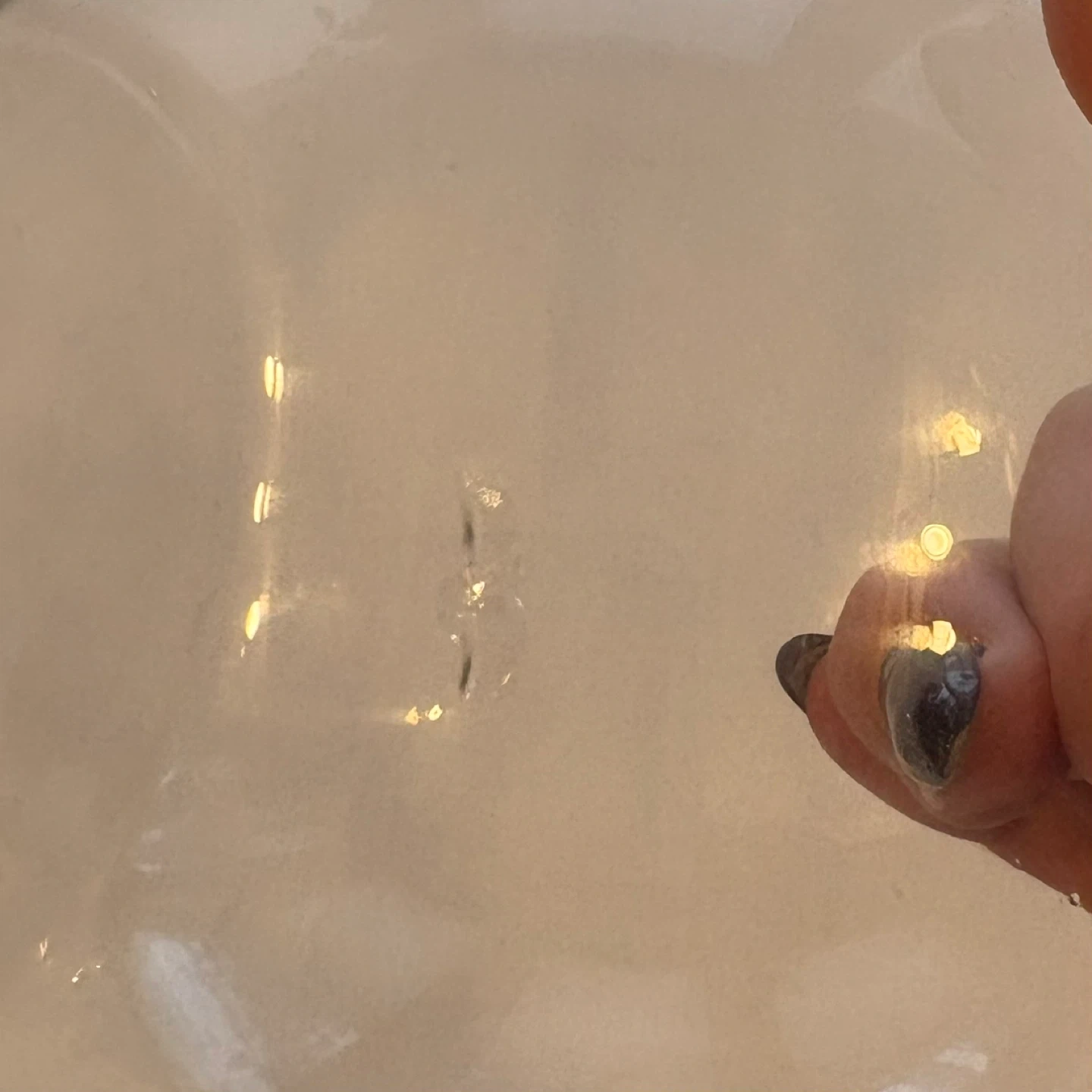Flaws: Manufacturer flaws noted on the bottom: one imperfection that resembles a small chip (but is not chipped) and one small glass bubble causing slight distortion. Neither flaw is visible when the vase is sitting flat on its base.