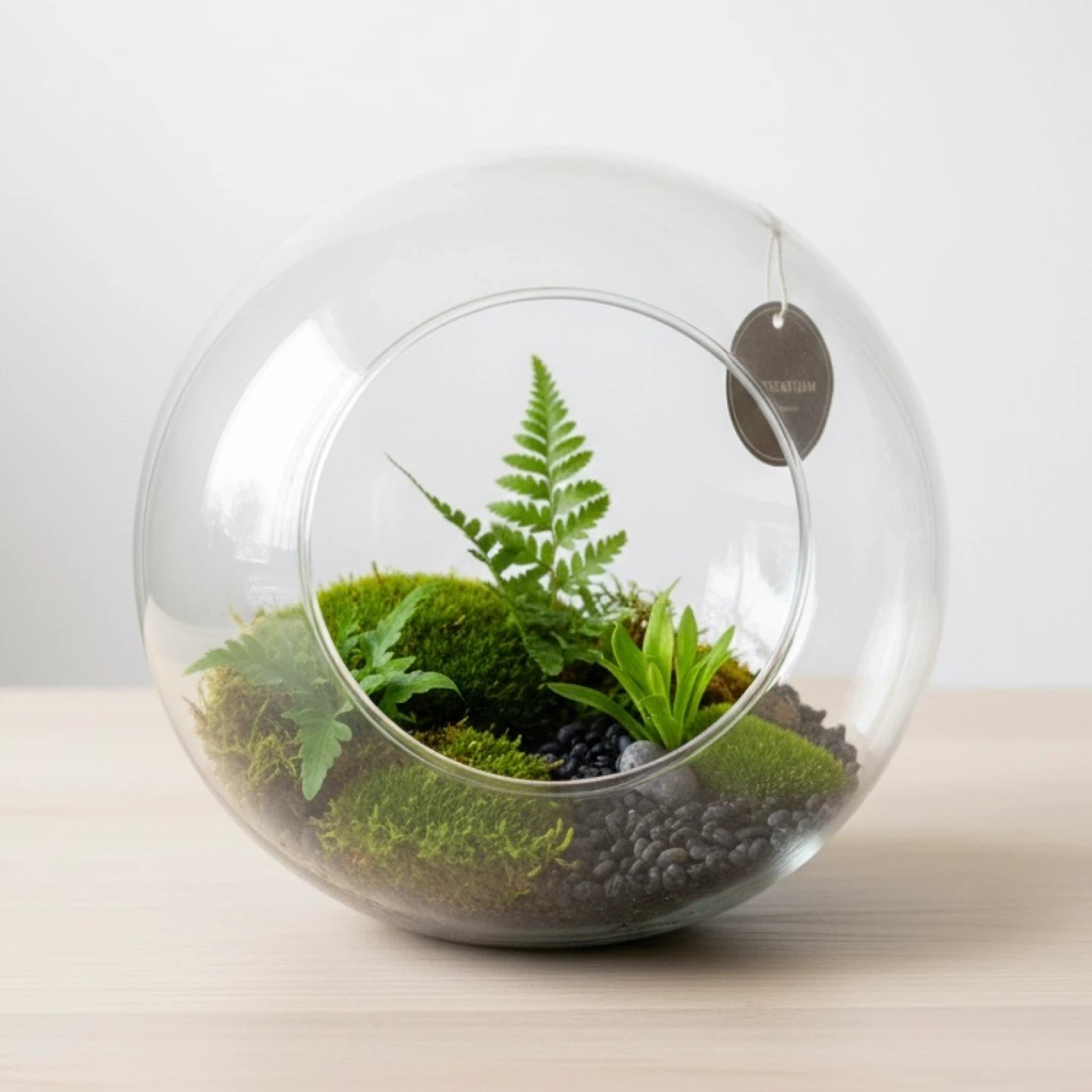 Clear Glass Bubble Terrarium Vase with Off Center Side Opening