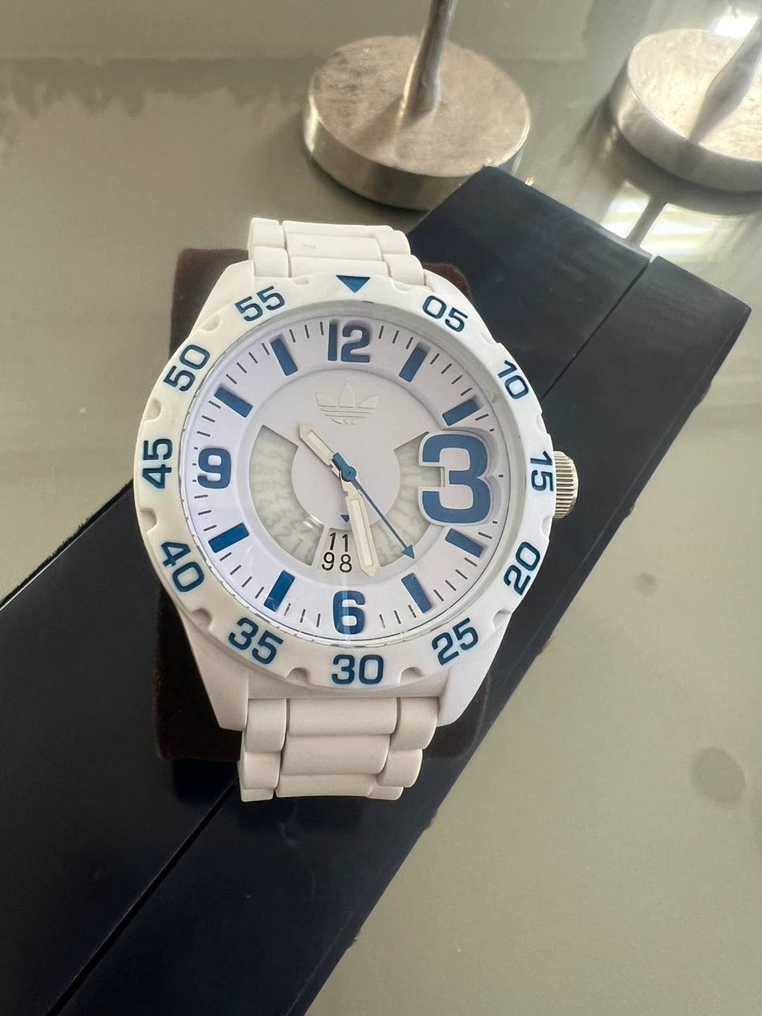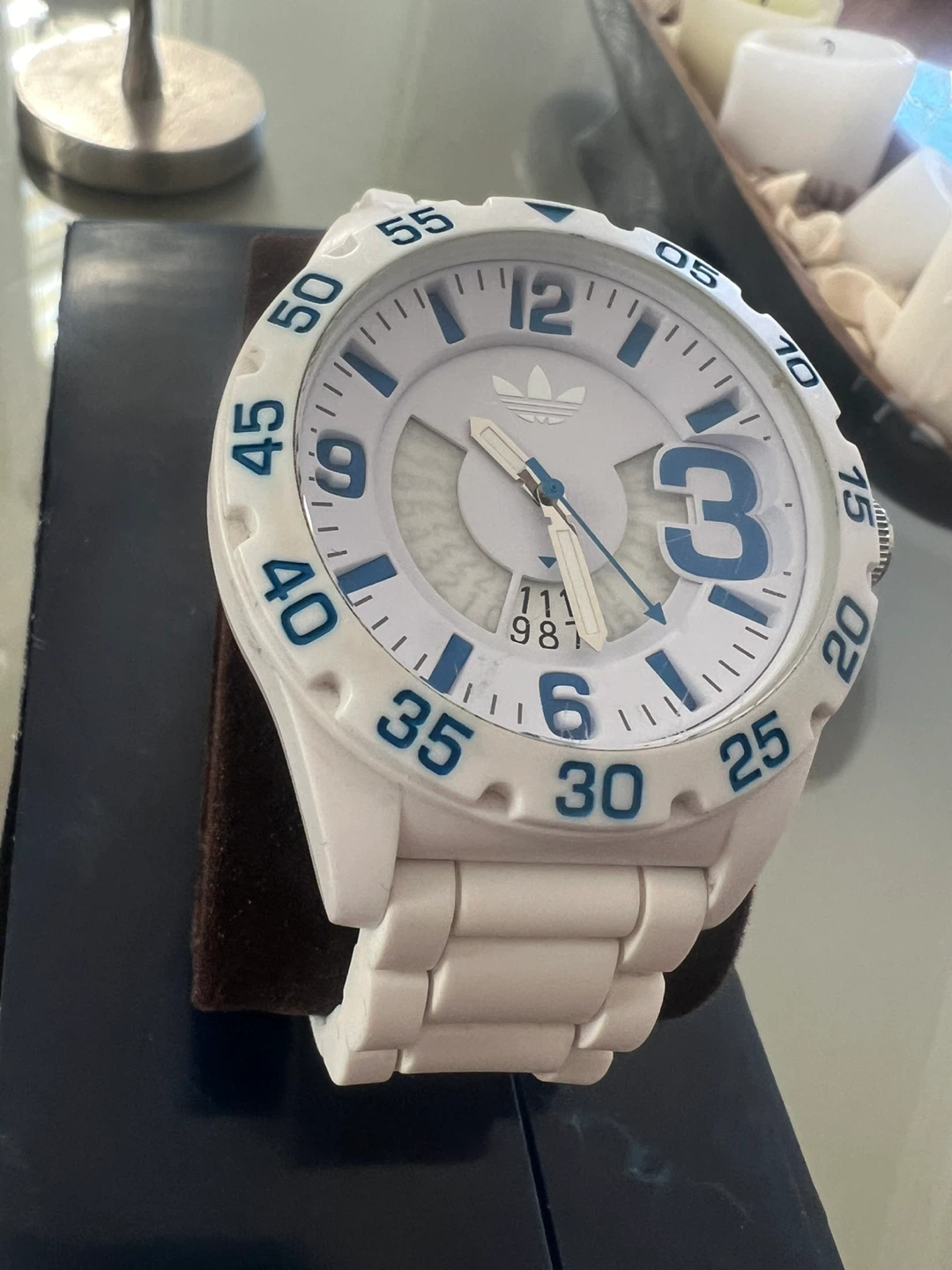 1 / 41 / 4Buy & SellAdidas White & Blue WatchAdidas White & Blue Watch$40Selling a stylish Adidas watch in white and blue. The watch is in great condition and ready to wear!ConditionGoodBrandAdidasWHERE TO MEETBayview and 401View MapSELLERverifiedSomayehSt.Andrew50941 reviews2 chats·2 favorites·58 viewsSEND CHAT TO SELLERHi Somayeh! I’m interested in your listing.Hi Somayeh! I’m interested in your listing.Get the Karrot app to chatSign In to chat