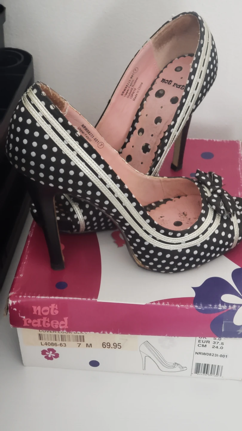 Selling a pair of Not Rated heels in a fun polka dot pattern! They are a size 7M and come with the original box. Originally bought for $69.95. These heels are perfect for adding a bit of flair to any outfit