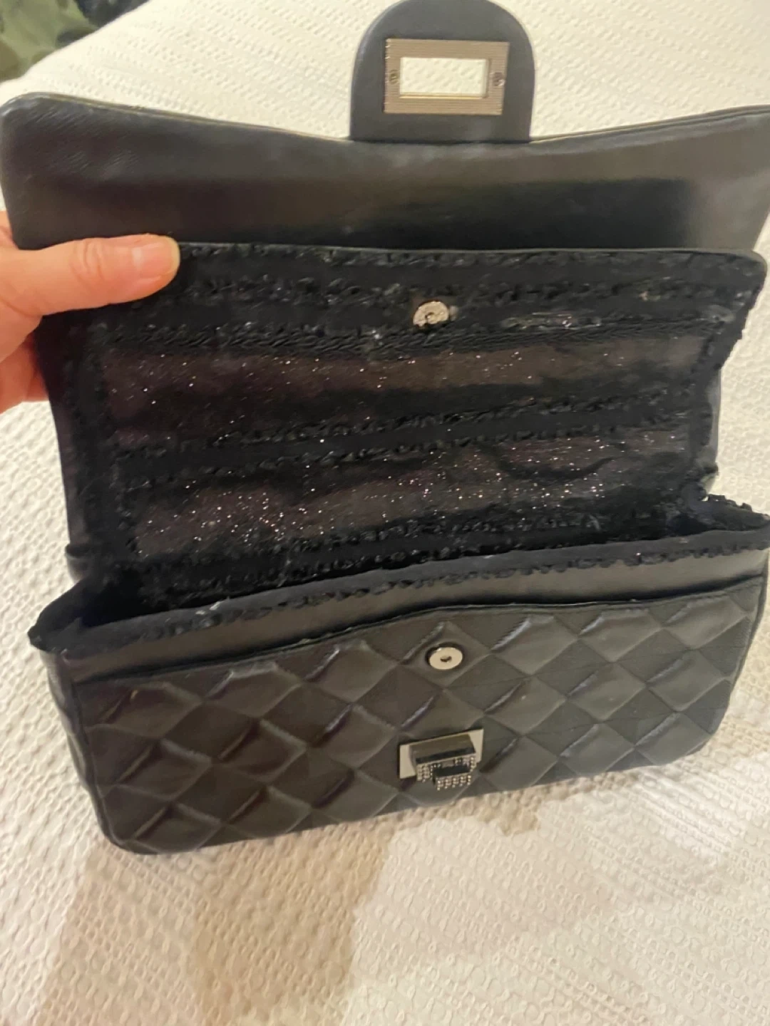 The inside of the bag is slightly worn, so it has been repaired with a ribbon/fabric.”