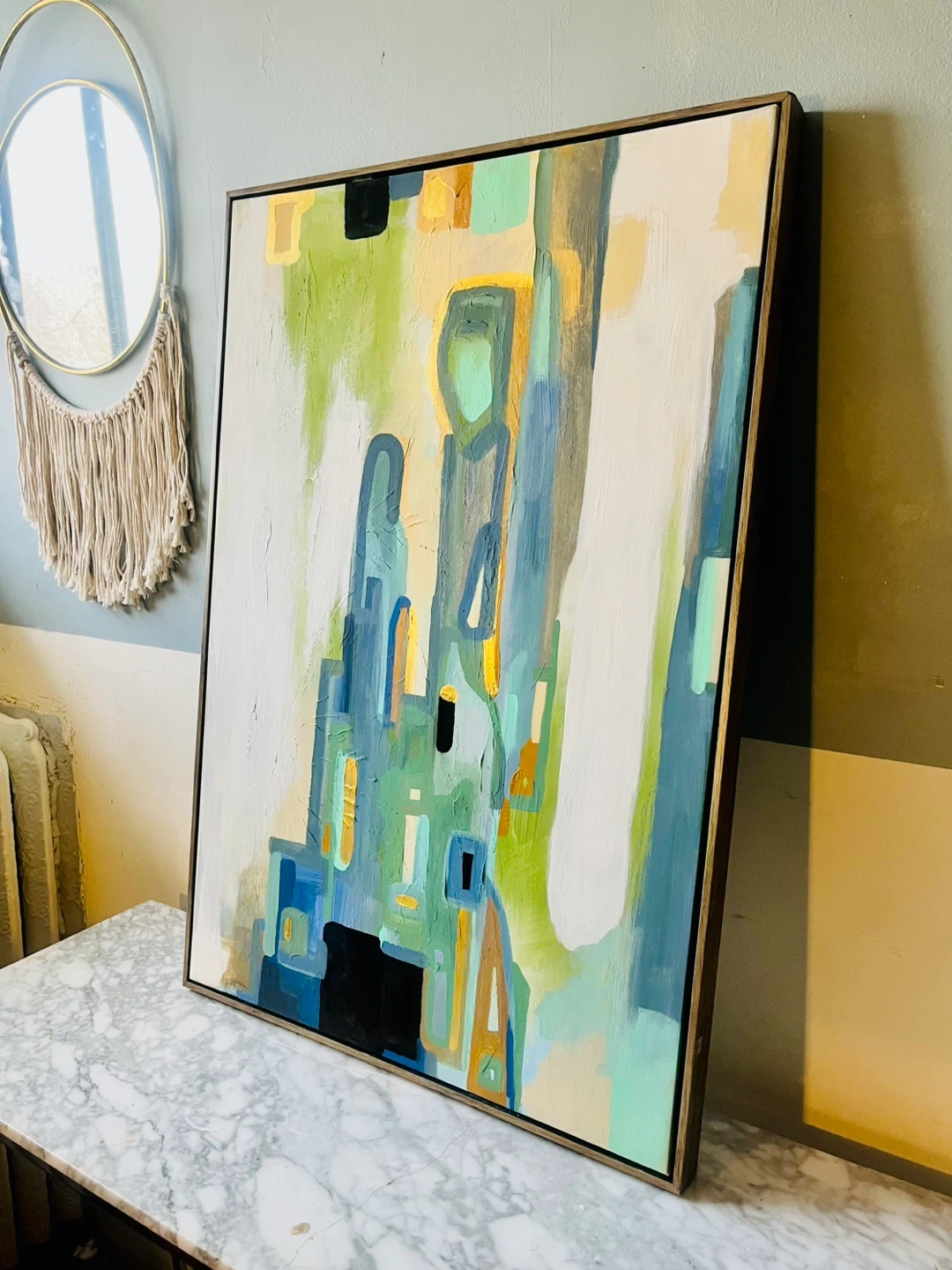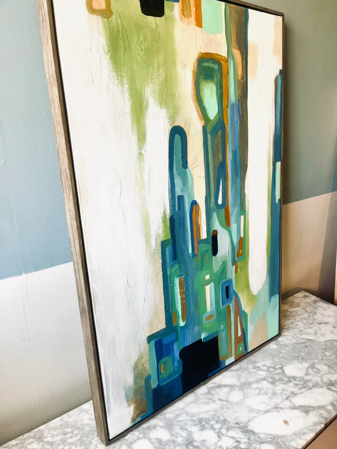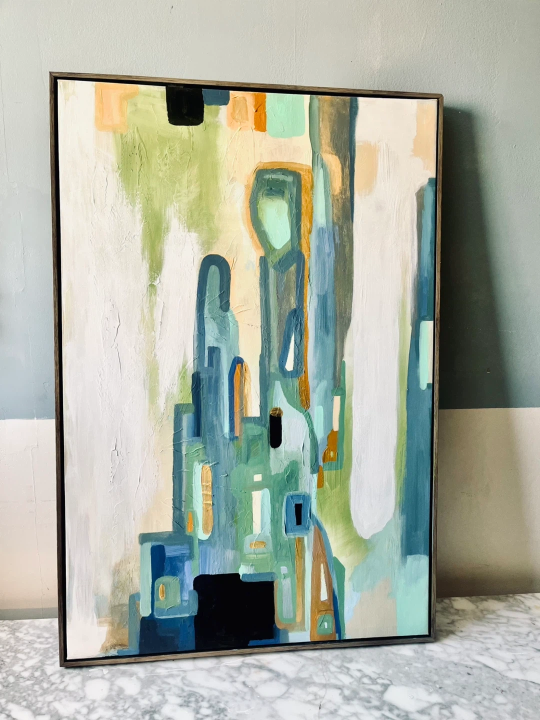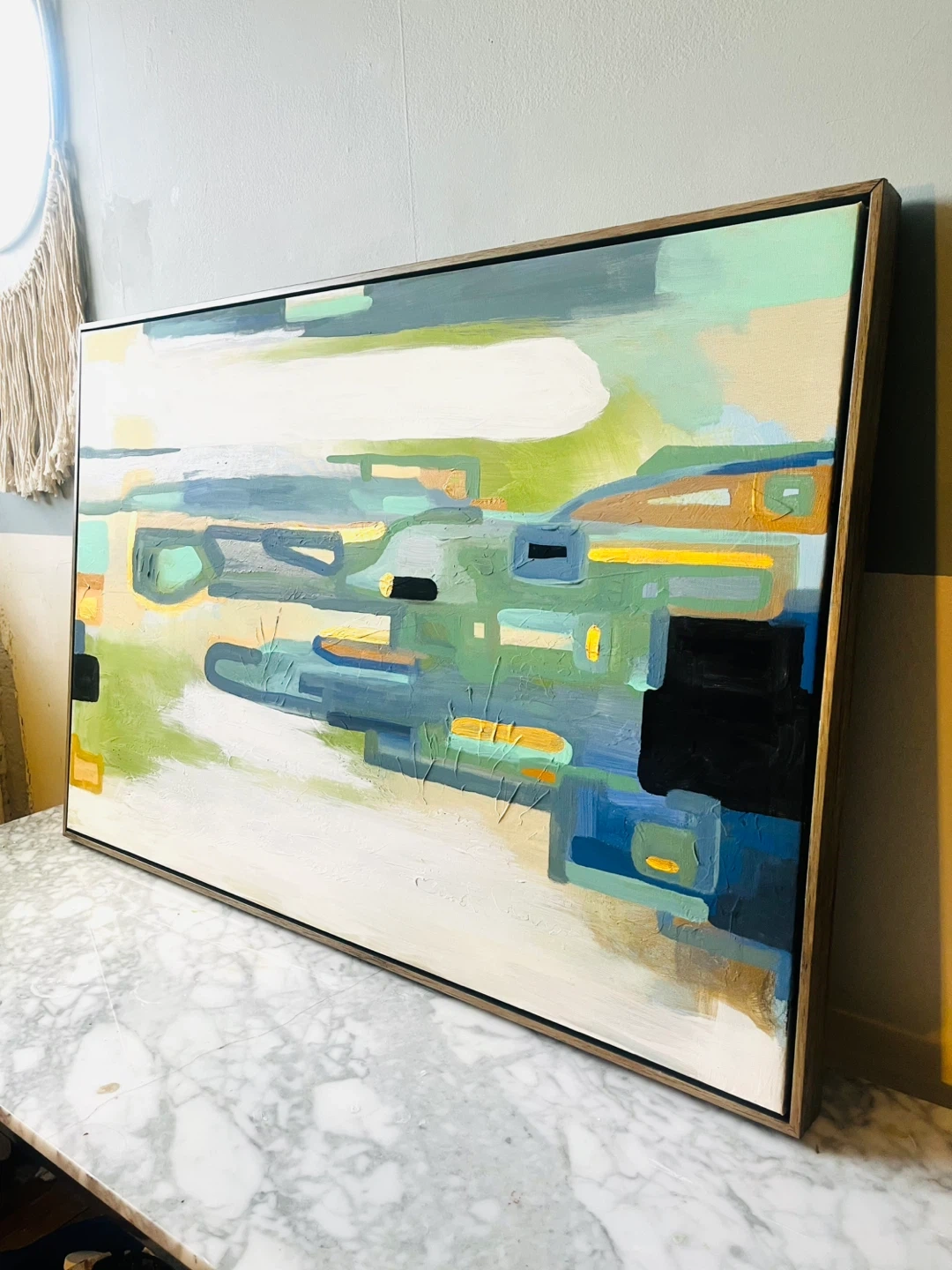 This is a beautiful piece of abstract wall art with a modern frame - MCM inspired. Hand made.