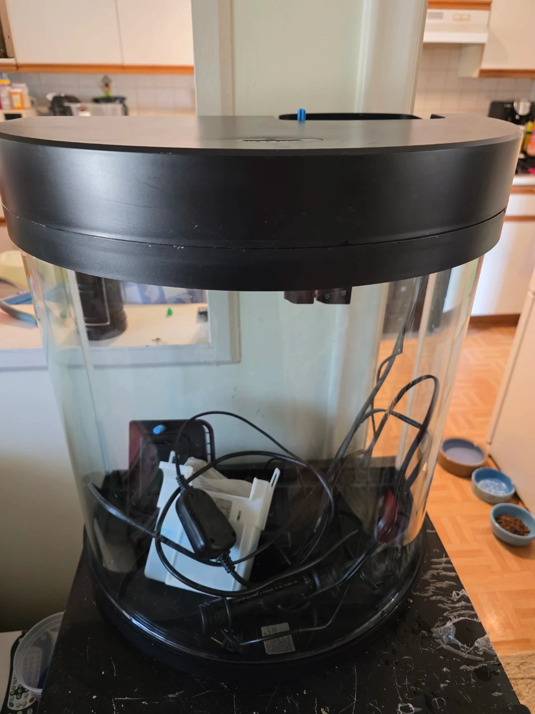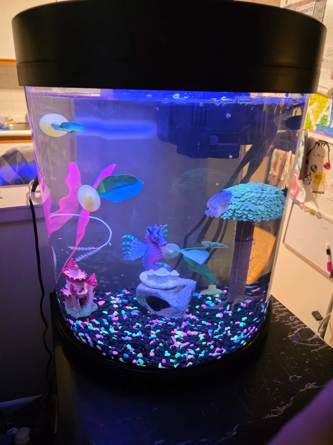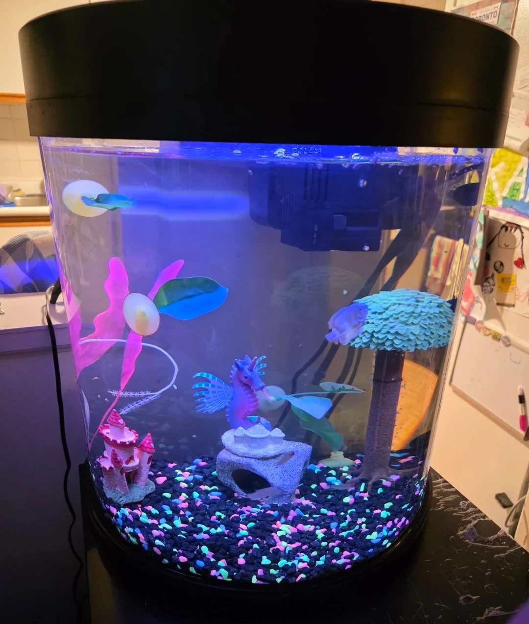 Selling a used Top Fin aquarium, perfect for starting a new aquatic adventure! It comes with colourful stone, light, and high end filter. The aquarium is in good condition and ready to be set up. 19.5 tall. 17 wide. 11 deep. 14 deep with filter. Inches.