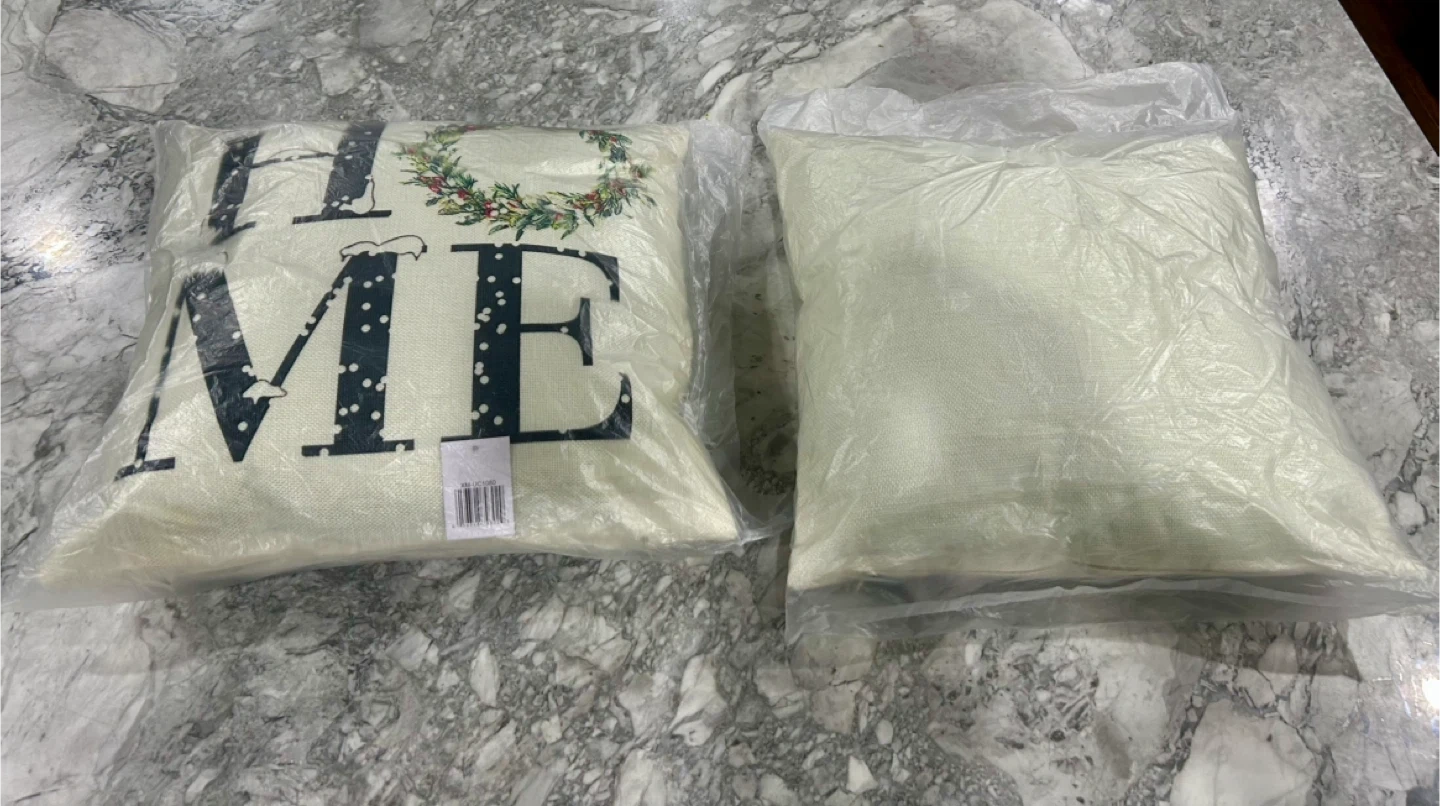 Brand new CF “HOME” pillows in farmhouse holiday style.
