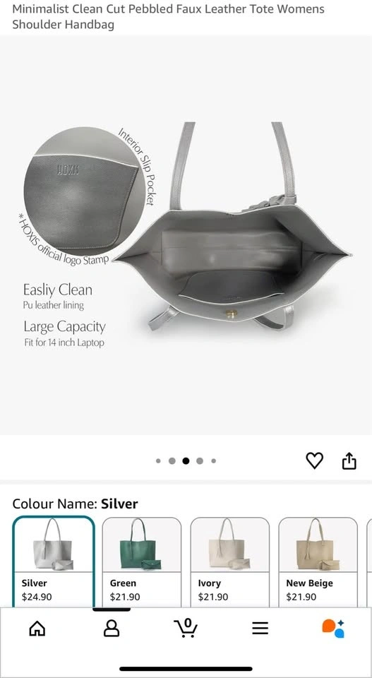 Chic Faux Leather Tote – Silver, Magnetic Closure, 14” Laptop Friendly 👜✨