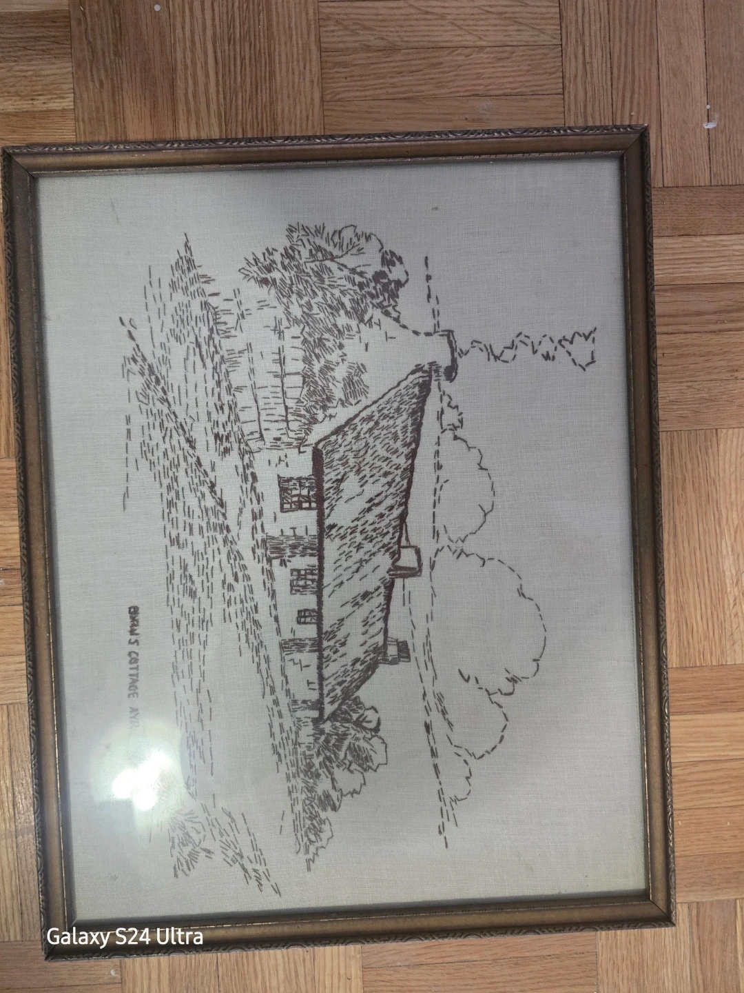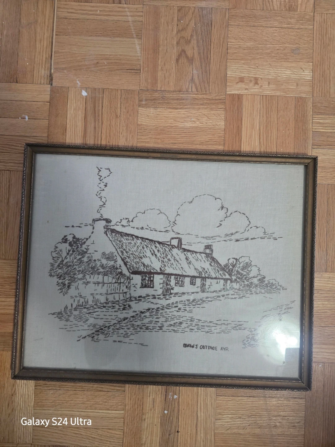 Selling a framed 'Burns's Cottage Ayr'. It's a lovely piece that would look great in any home. The frame complements the artwork nicely, adding a touch of vintage charm