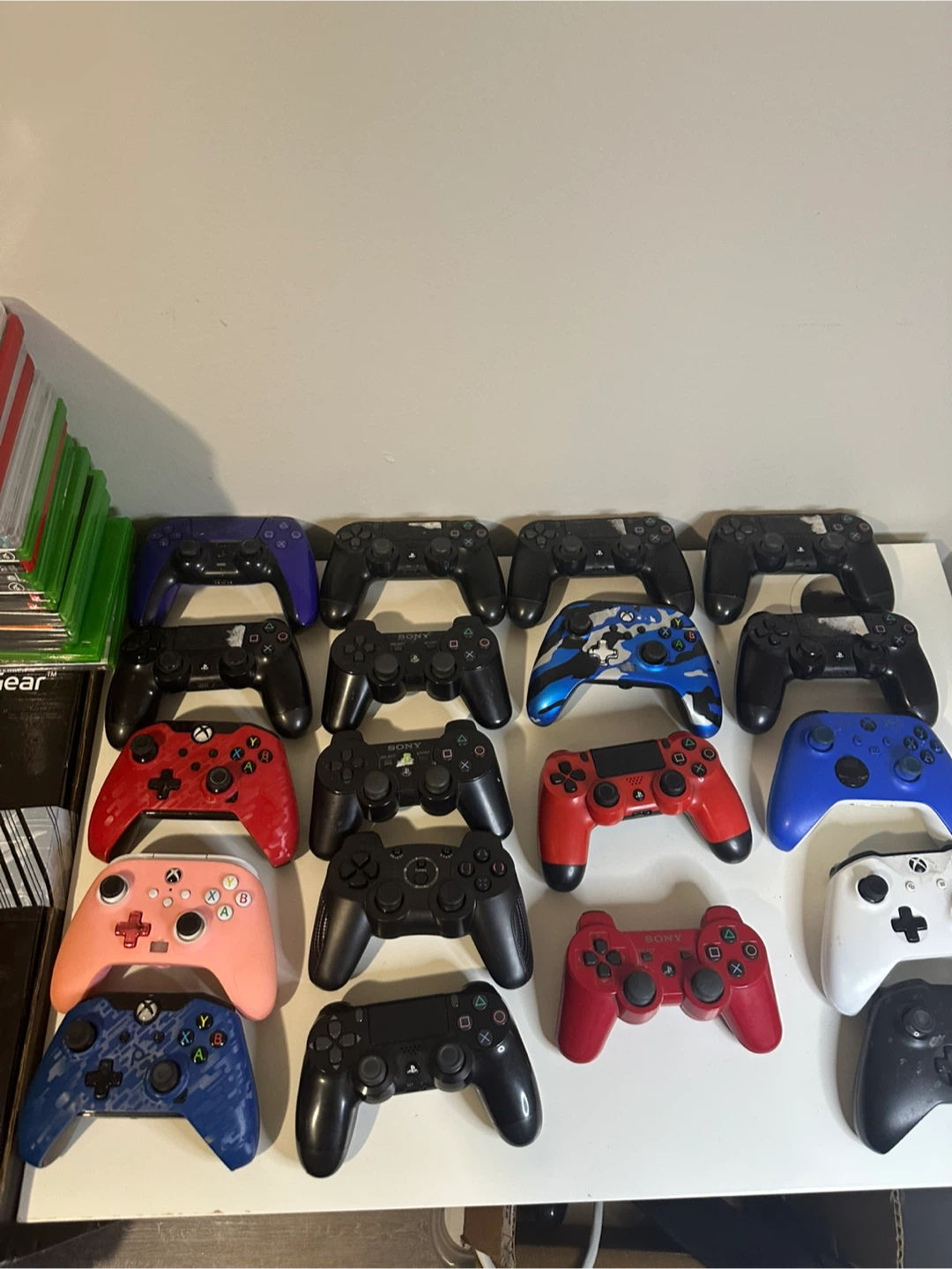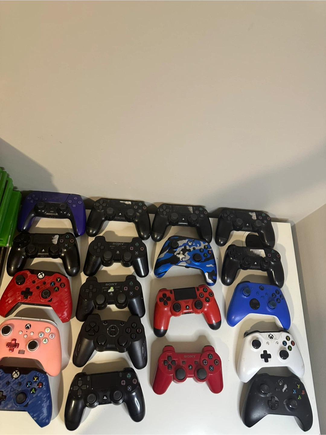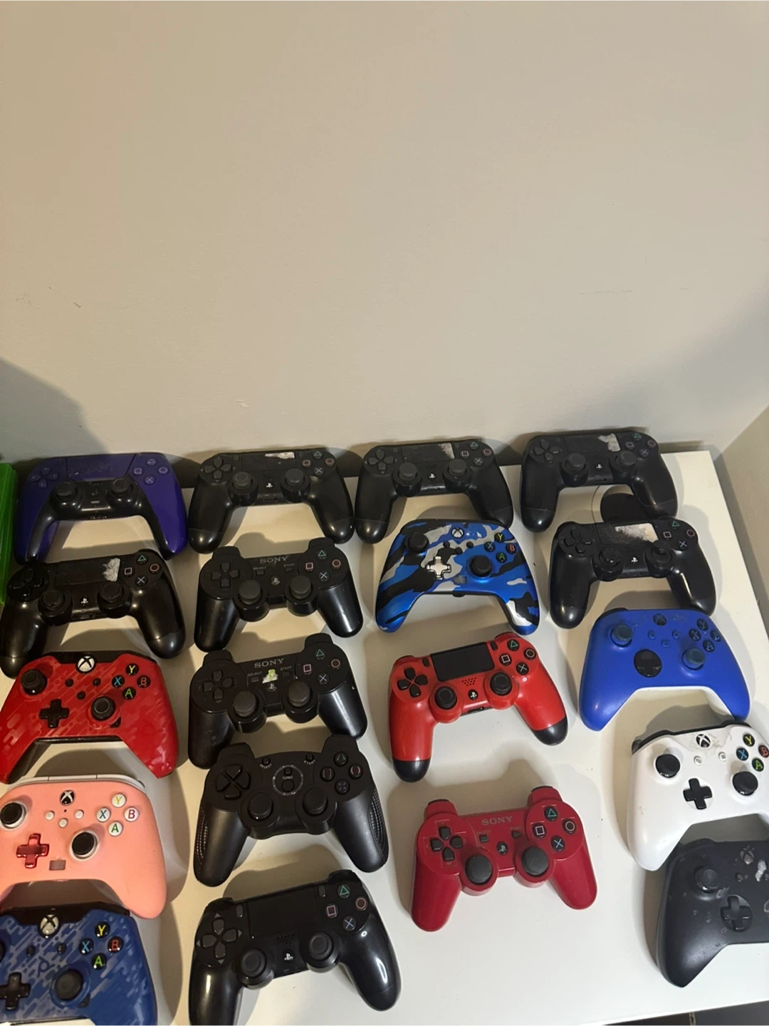 I'm selling a collection of used 19 PlayStation and Xbox controllers. Various colours and conditions available, as shown in the photos. Some of them none working, stick drift.