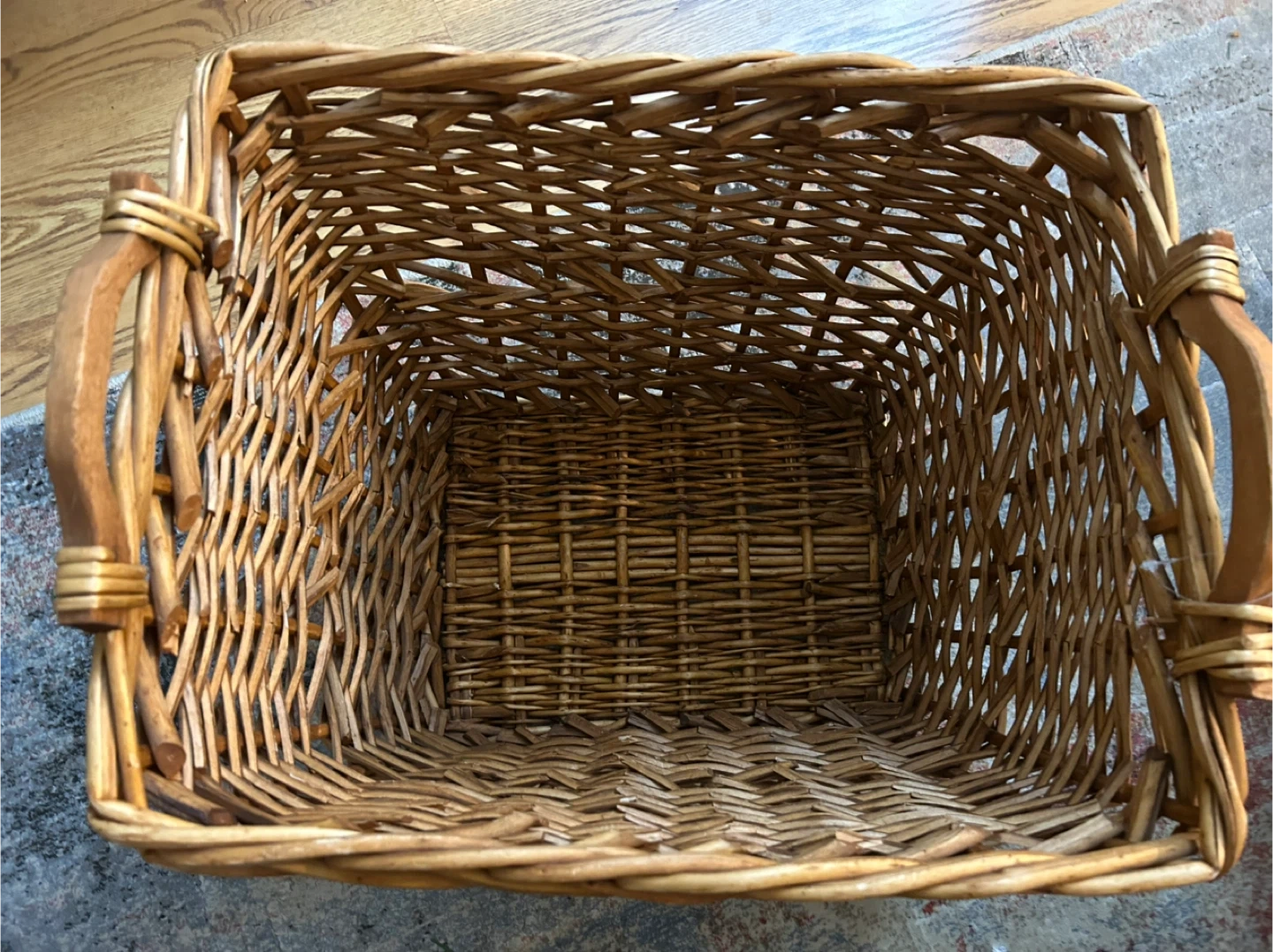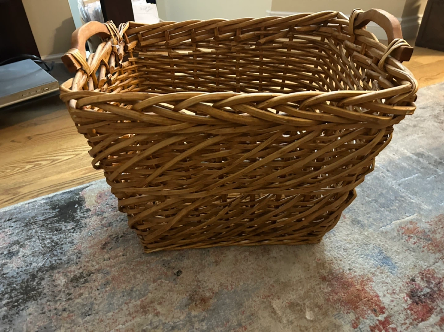 Selling a lovely wicker basket, perfect for storage or decor! It has sturdy wooden handles, making it easy to carry. The basket is in great condition and ready to add a touch of rustic charm to your home