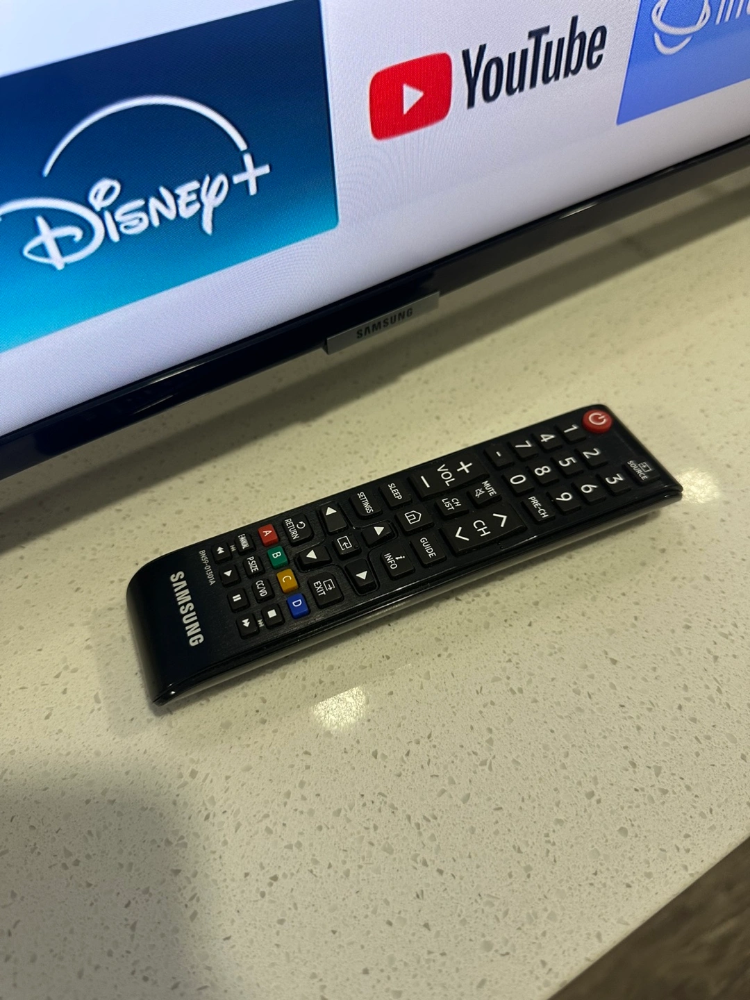 Comes with the original remote and features Apple AirPlay, along with all standard Samsung smart features (apps, streaming, screen mirroring, Wi-Fi, etc.).
