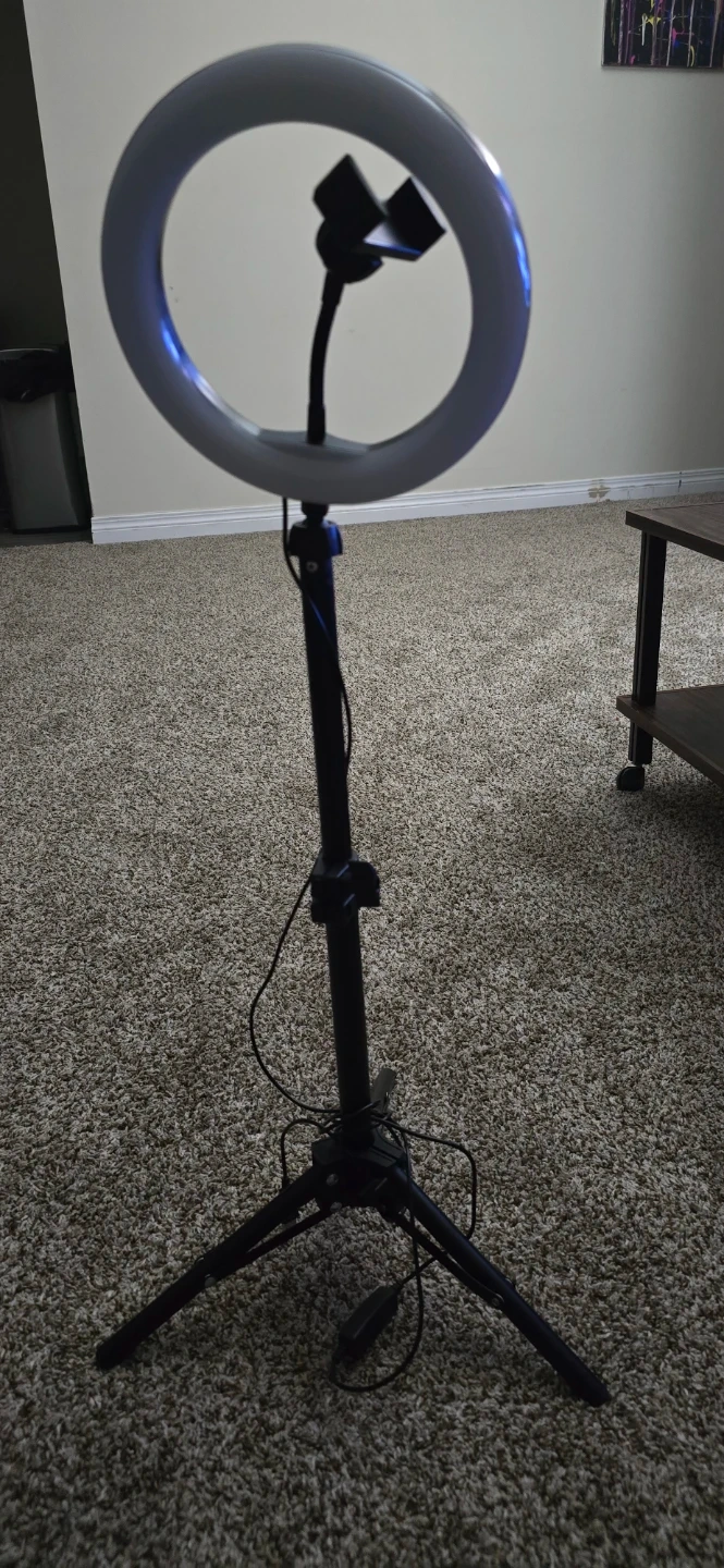 Selling a handy LED ring light complete with a tripod stand. It's perfect for getting that extra bit of light for video calls or content creation. The light is in great shape and ready to use!